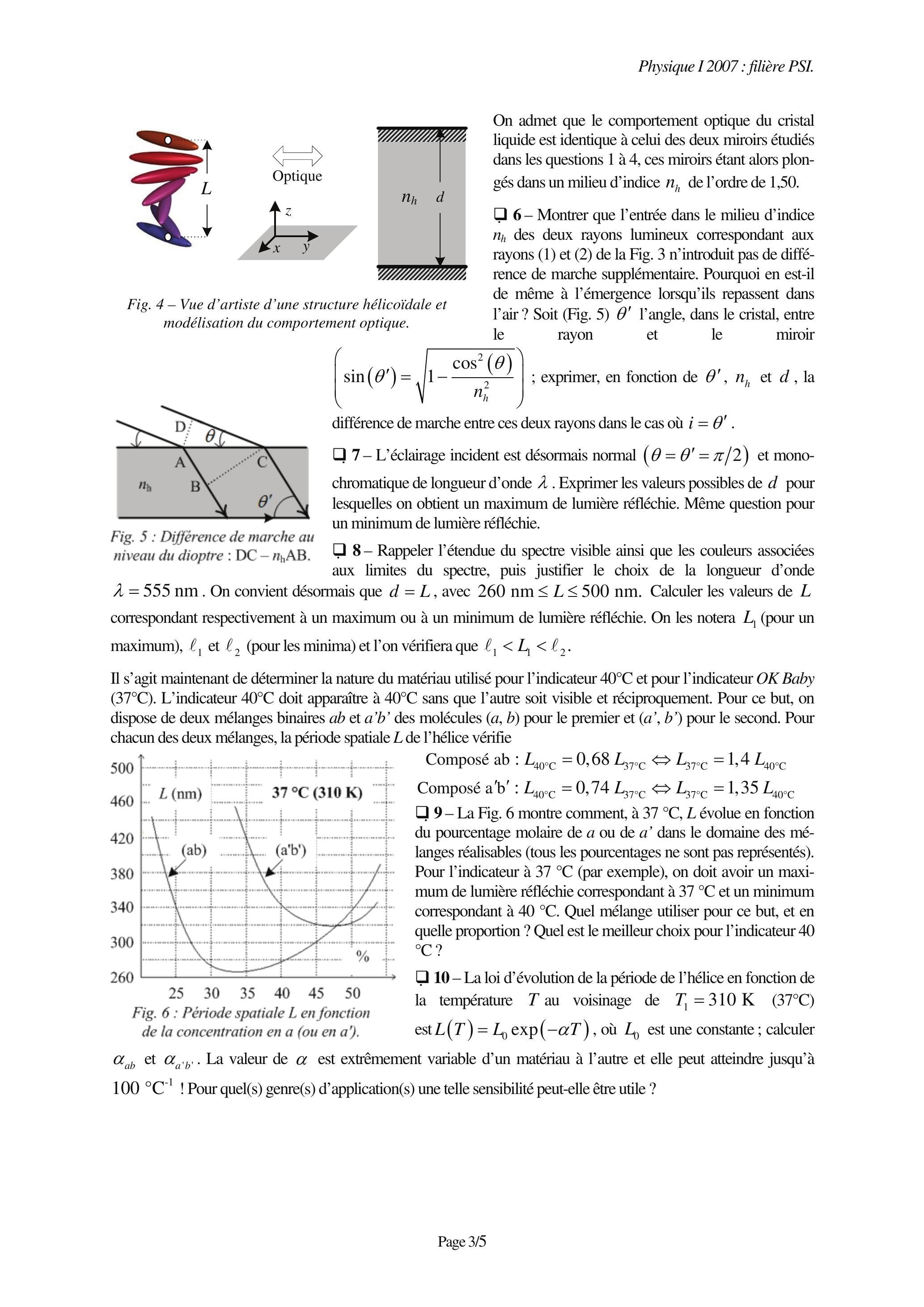 La bande sensible du thermomètre utilisé pour le contrôle de la température du bain est composée de «cristaux liquides » présentant une structure hélicoïdale stable, dite cholestérique. Les molécules constituant les cristaux liquides sont des molécules allongées, représentées par des ellipsoïdes sur la Fig. 4, et qui sont disposées dans des plans perpendiculaires à un axe ; chaque molécule fait un angle fixe par rapport à la précédente, les extrémités forment donc une double structure hélicoïdale, de période spatiale . Cette période dépend de la température du milieu (et bien sûr de la molécule constituant le cristal liquide). Lorsque l'on utilise comme cristal liquide un mélange binaire de deux cristaux liquides, la période spatiale de l'hélice dépend de la composition du binaire.