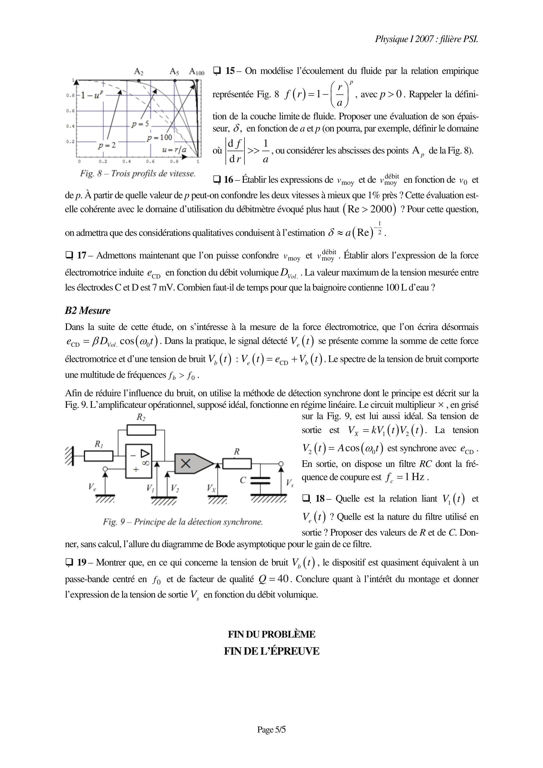 Le bain est une activité quotidienne très appréciée du jeune enfant. Le bien-être de ce dernier lors du bain est, selon toute vraisemblance, lié au caractère aquatique de sa vie intra-utérine. Les jeux qu'il y pratique sont très différents de ceux qu'il effectue durant le reste de la journée. Le problème étudie, en deux parties indépendantes et , d'une part le thermomètre utilisé pour contrôler la température, d'autre part le principe de fonctionnement d'un débitmètre électromagnétique mesurant le débit lors du remplissage de la baignoire. Les parties B1 et B2 sont largement indépendantes.