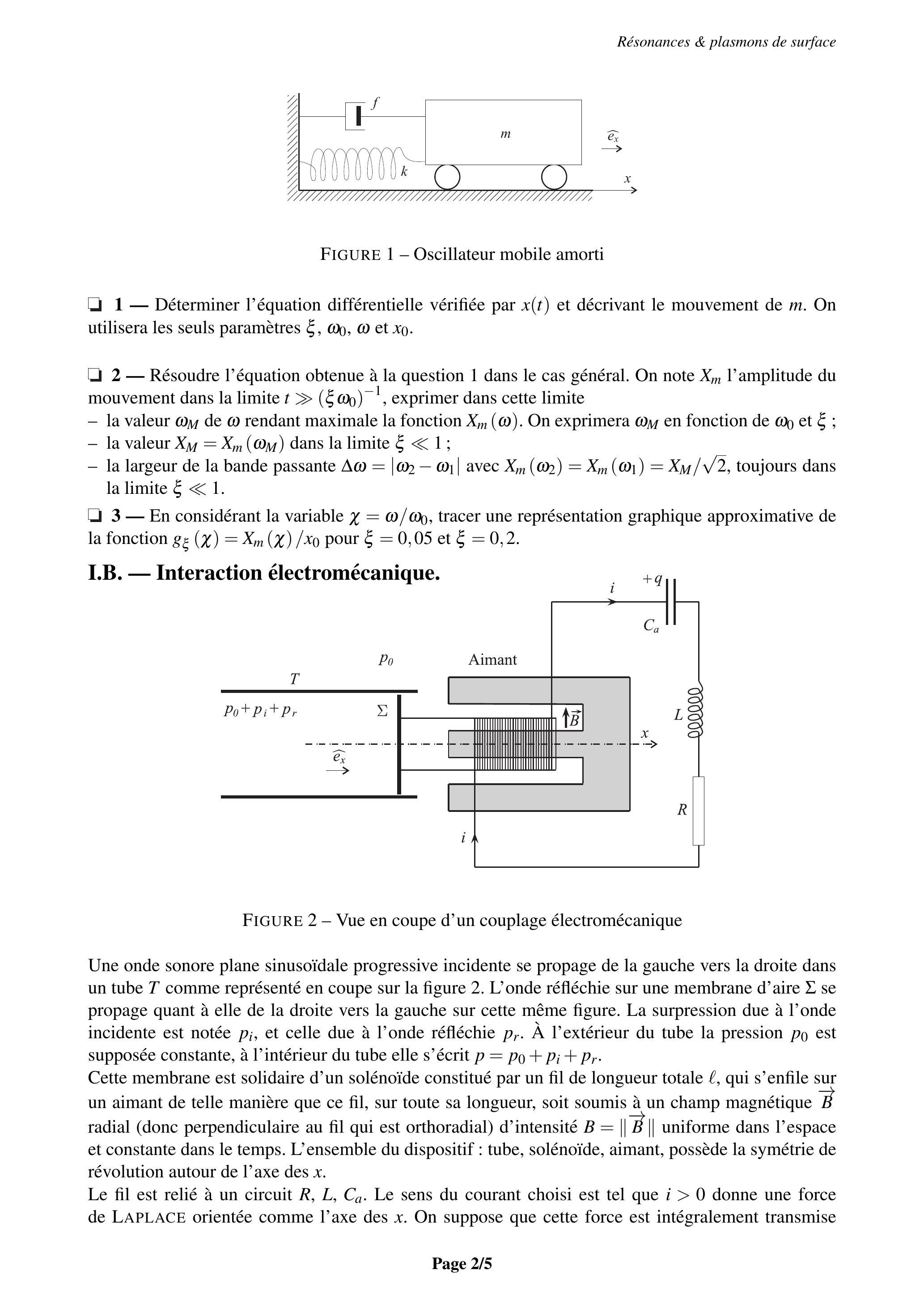 Le problème se compose de trois parties largement indépendantes. La première partie présente un modèle qui servira dans la partie suivante pour résoudre qualitativement par analogie quelques questions, avec des calculs plus simples. La dérivée par rapport au temps d'une fonction est notée . Hormis dans la partie I et dans la partie II, les nombres susceptibles d'avoir une partie imaginaire non nulle sont soulignés. La notation signifie partie réelle du nombre complexe . Les vecteurs sont notés avec un chapeau s'ils sont unitaires , avec une flèche dans le cas général. Les applications numériques peuvent toutes être effectuées sans calculatrice, il n'est donc demandé de fournir qu'un ordre de grandeur correct.