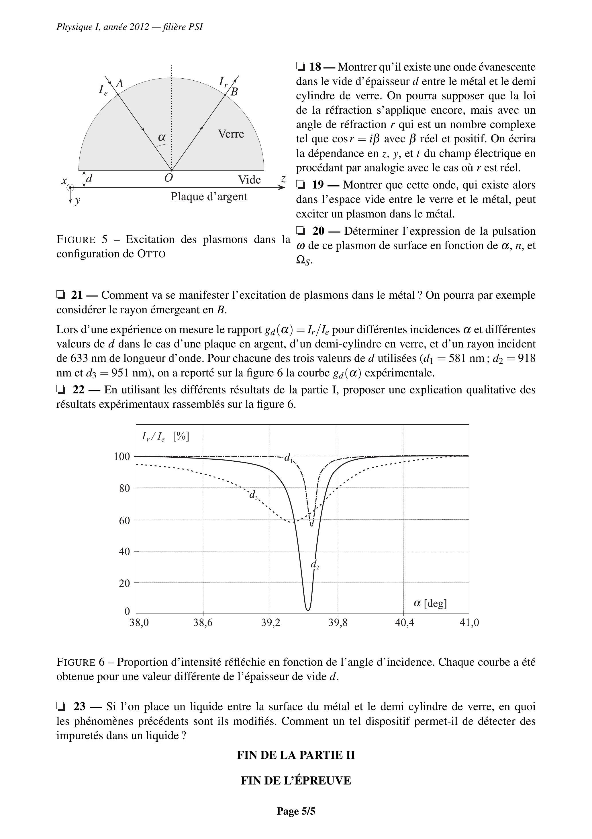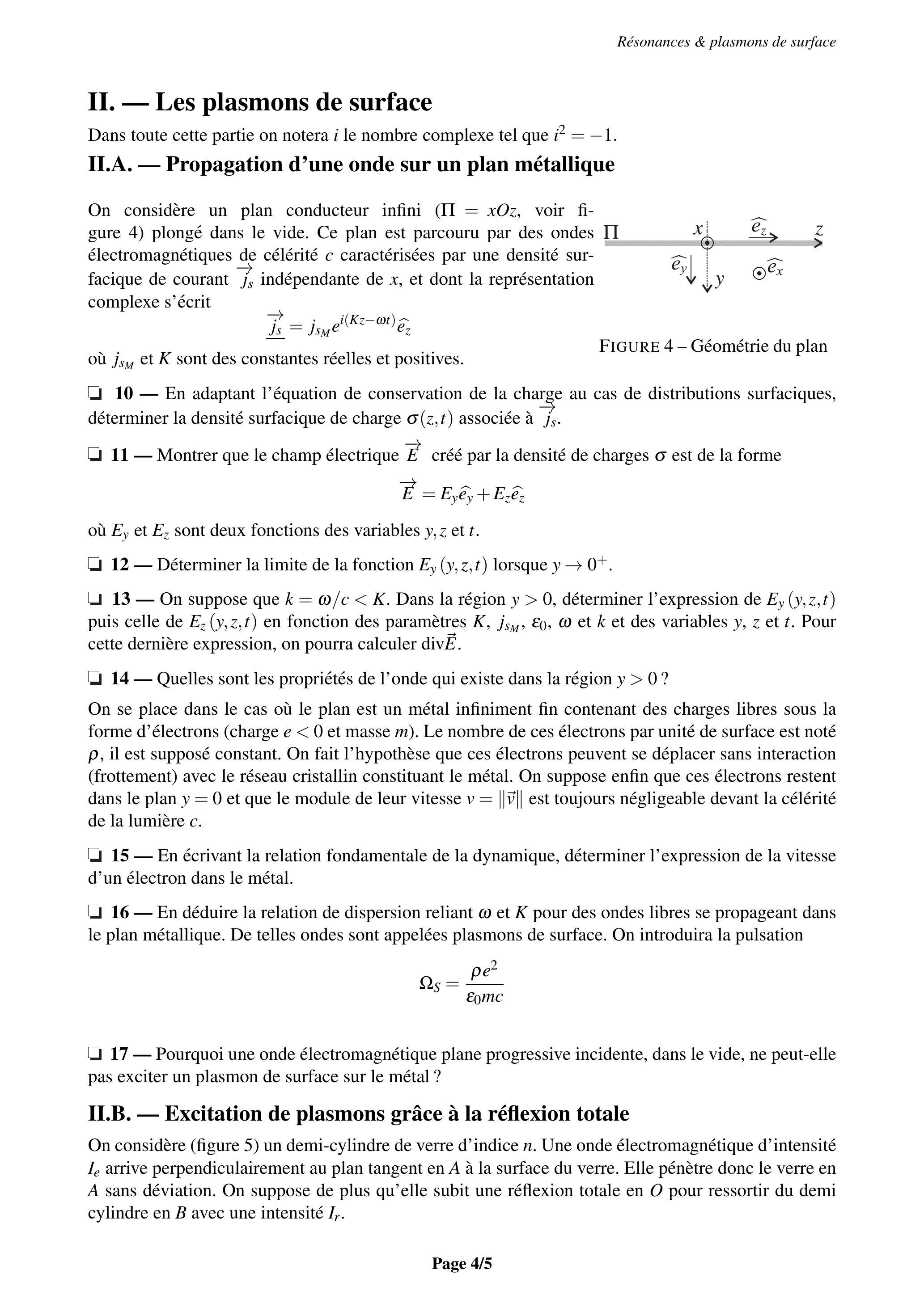 21 - Comment va se manifester l'excitation de plasmons dans le métal? On pourra par exemple considérer le rayon émergeant en .