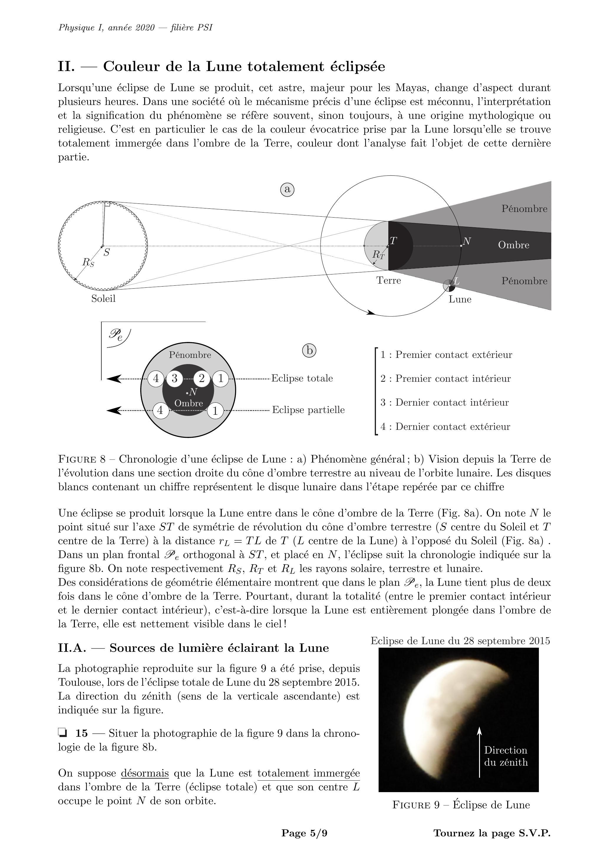 28 - L'angle sous lequel le rayon terrestre est vu depuis est d'environ tandis que celui sous lequel le rayon solaire est vu depuis la Terre vaut environ . L'atmosphère terrestre est-elle capable de dévier la lumière solaire pour éclairer le point ? On justifiera quantitativement la réponse en s'appuyant sur un schéma.