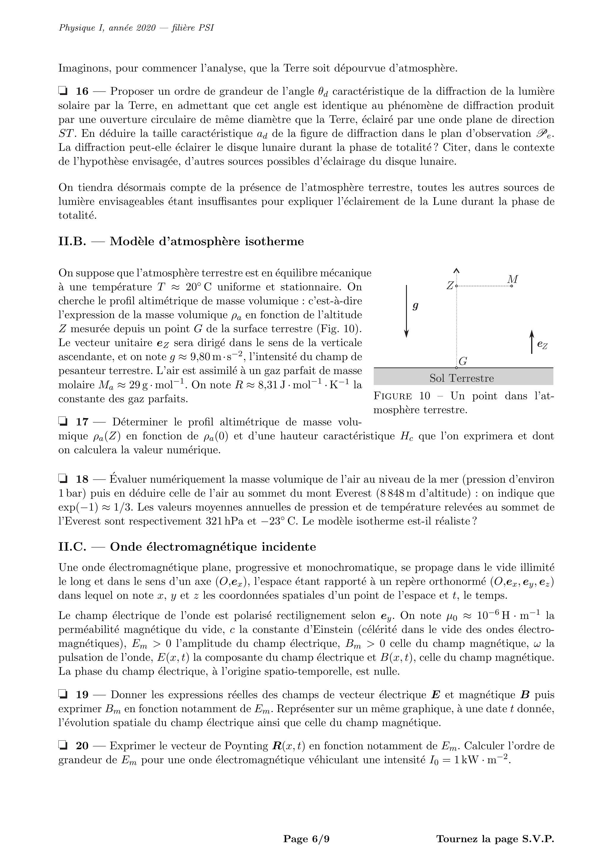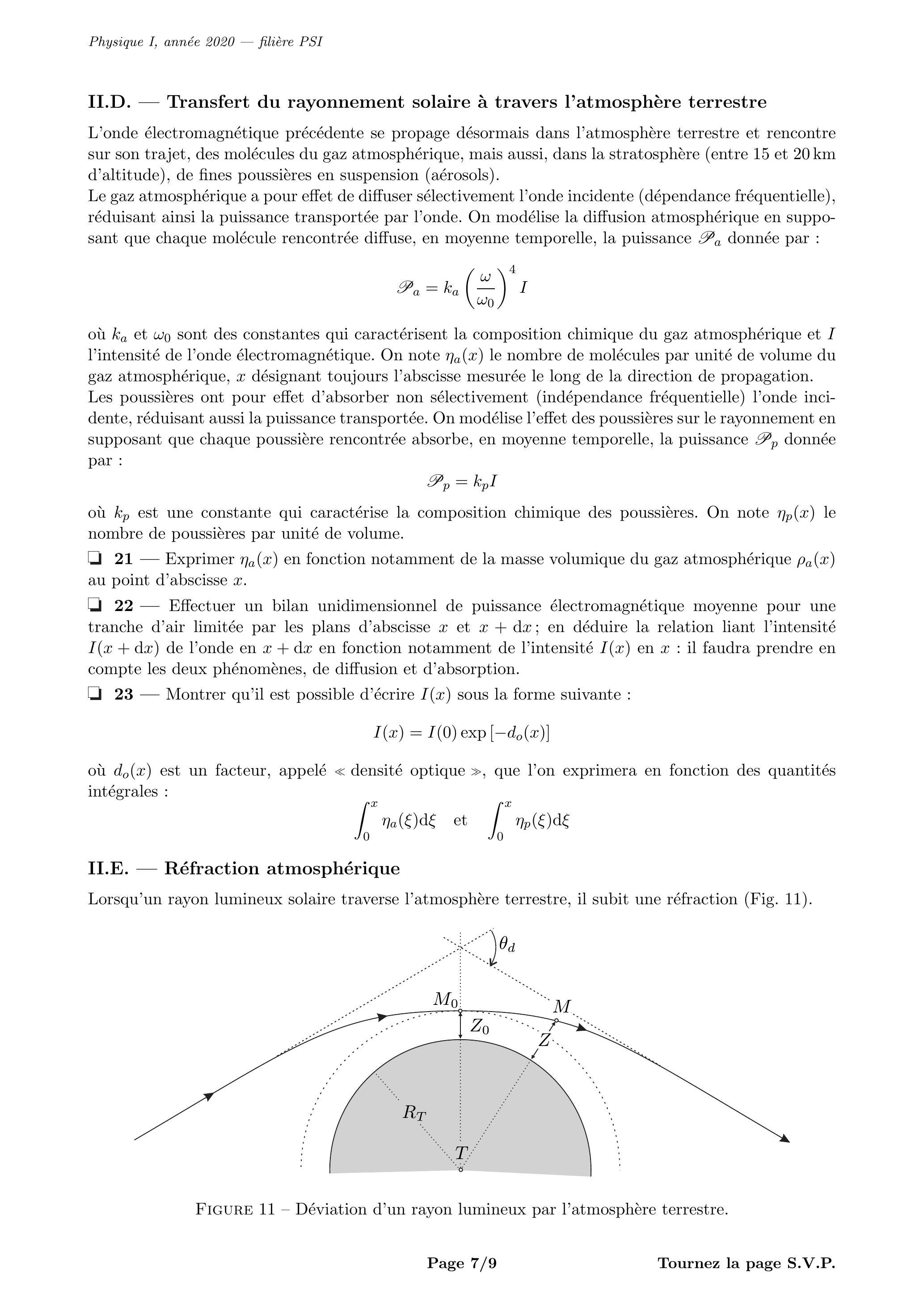 - Pourquoi l'atmosphère terrestre réfracte-t-elle les rayons lumineux qui la traversent? - En tenant compte des ordres de grandeur du problème, précisément et , exprimer en fonction de . Exprimer en fonction de puis en fonction de et .
