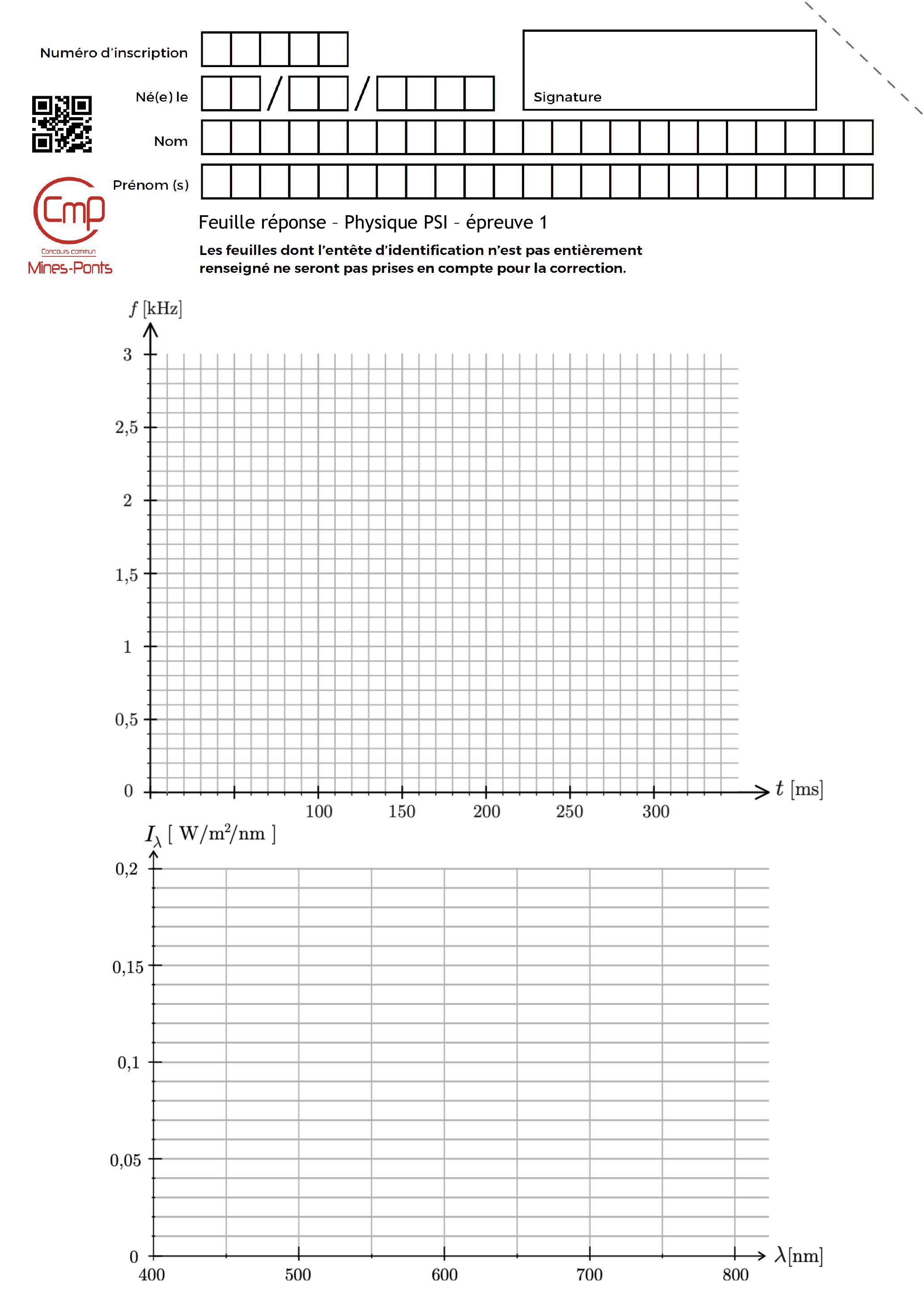Feuille réponse-Physique PSI-épreuve 1