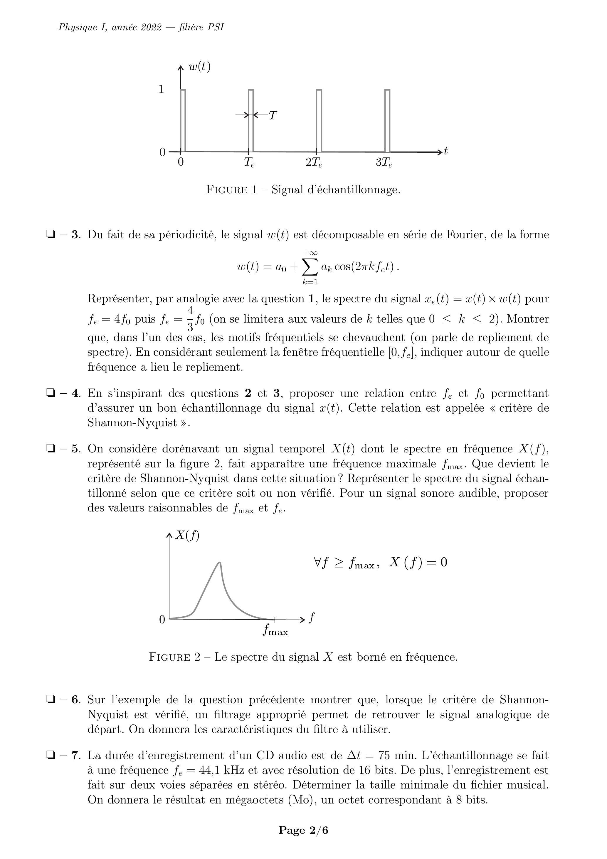 6. Sur l'exemple de la question précédente montrer que, lorsque le critère de ShannonNyquist est vérifié, un filtrage approprié permet de retrouver le signal analogique de départ. On donnera les caractéristiques du filtre à utiliser.
