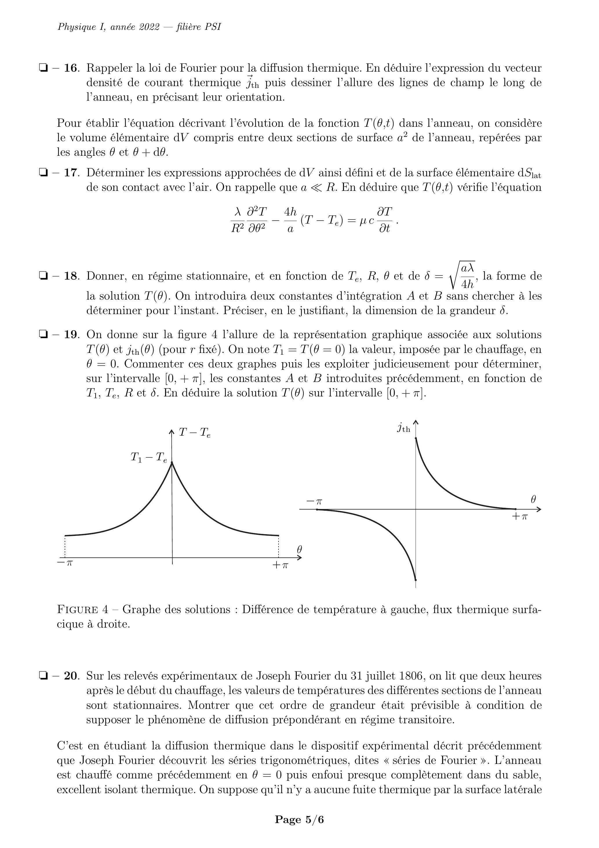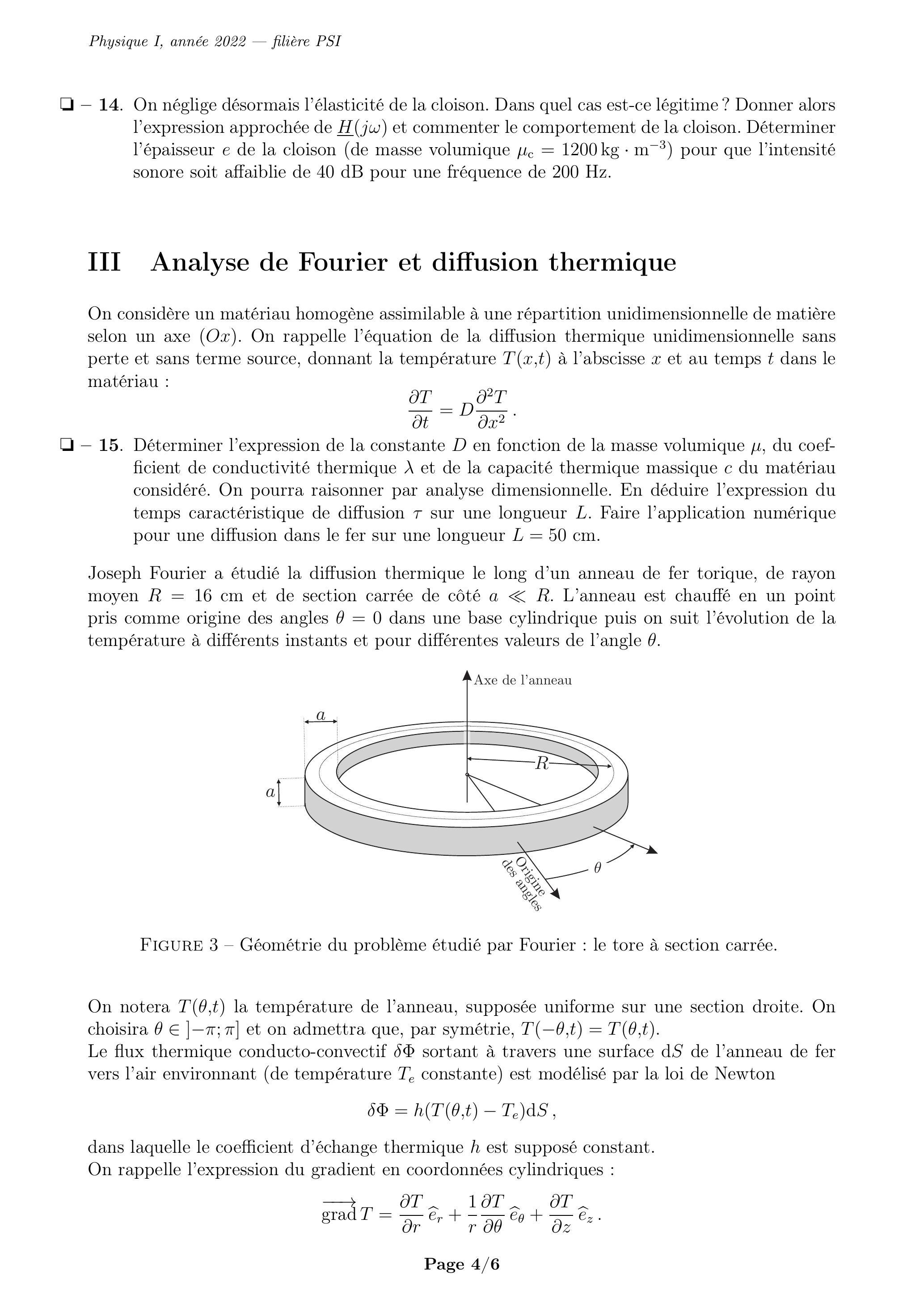 On notera la température de l'anneau, supposée uniforme sur une section droite. On choisira et on admettra que, par symétrie, .