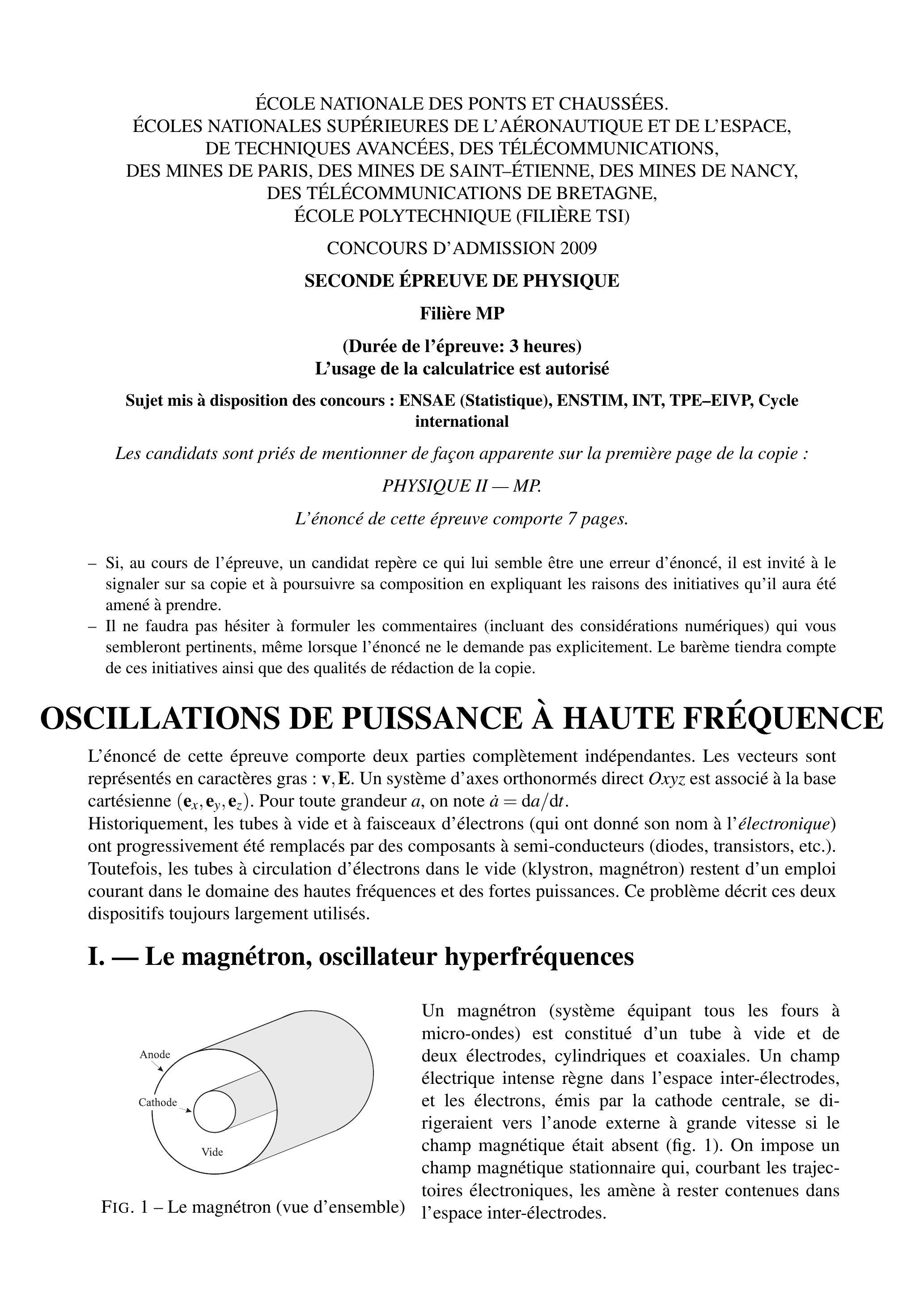 ÉCOLE NATIONALE DES PONTS ET CHAUSSÉES. ÉCOLES NATIONALES SUPÉRIEURES DE L'AÉRONAUTIQUE ET DE L'ESPACE, DE TECHNIQUES AVANCÉES, DES TÉLÉCOMMUNICATIONS, DES MINES DE PARIS, DES MINES DE SAINT-ÉTIENNE, DES MINES DE NANCY, DES TÉLÉCOMMUNICATIONS DE BRETAGNE, ÉCOLE POLYTECHNIQUE (FILIÈRE TSI)