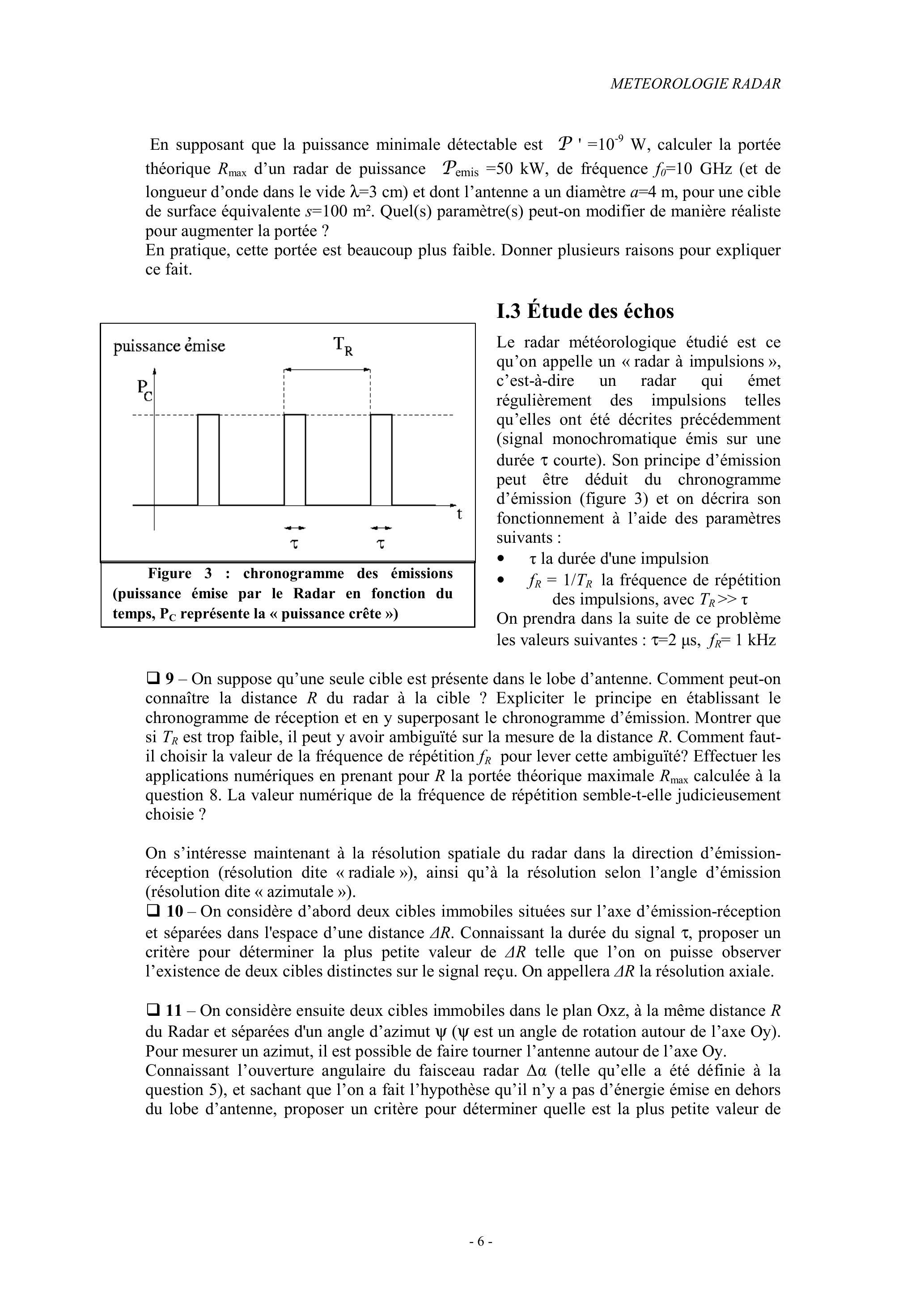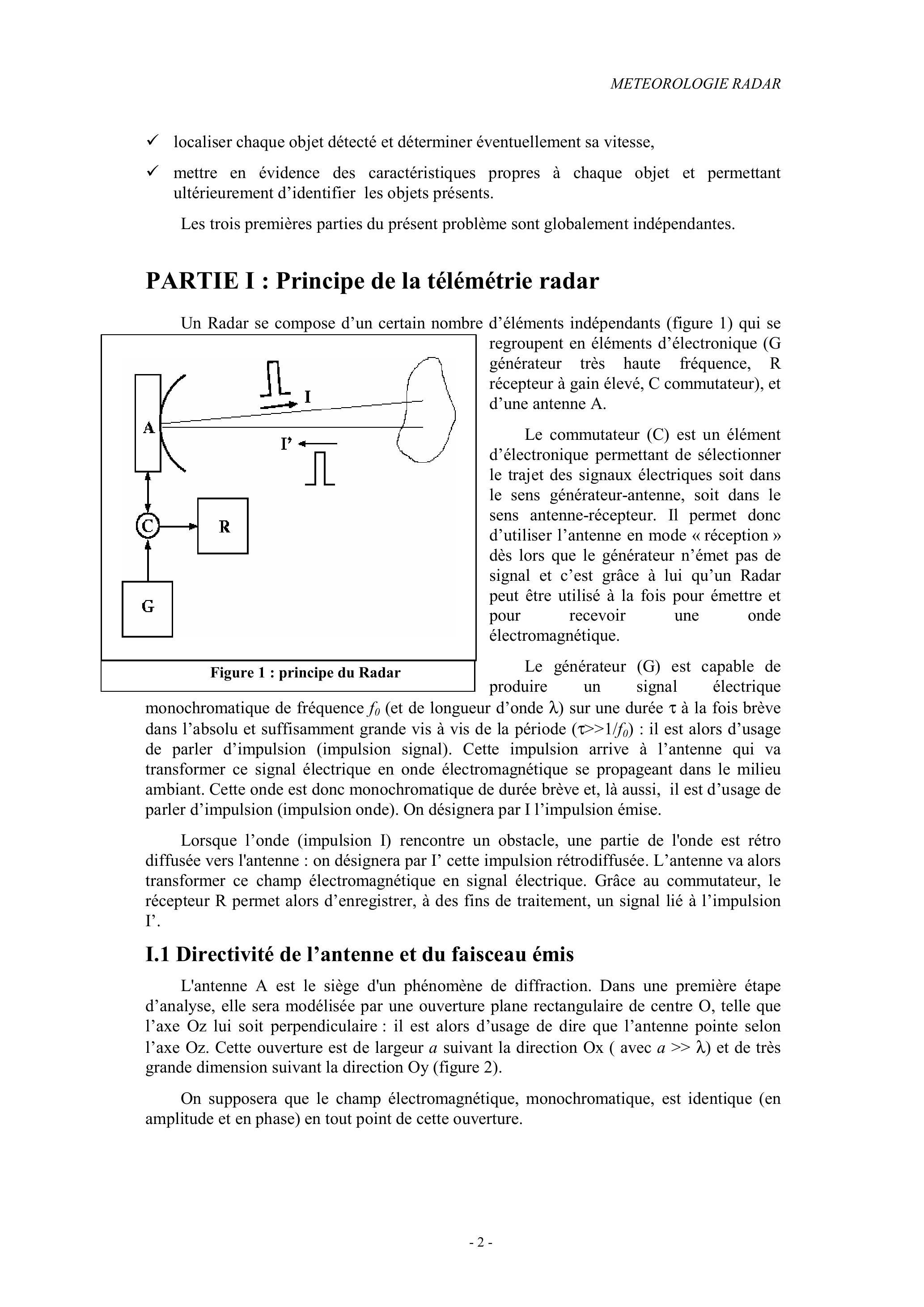 PARTIE I : Principe de la télémétrie radar
