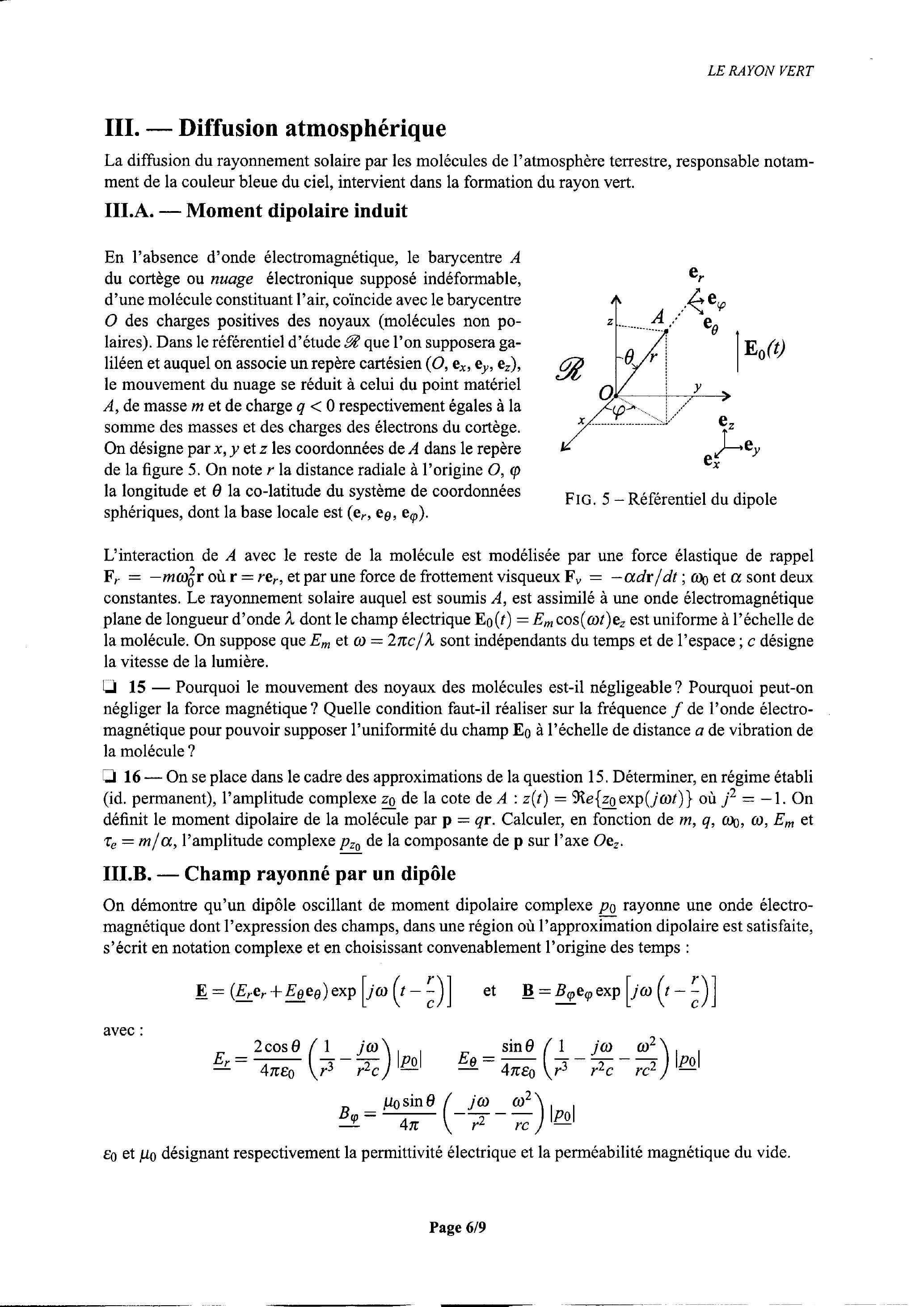 19 - Pour des fréquences situées dans le domaine du visible , on peut considérer de plus que . Exprimer la puissance moyenne totale diffusée par une molécule de l'atmosphère en fonction de et .