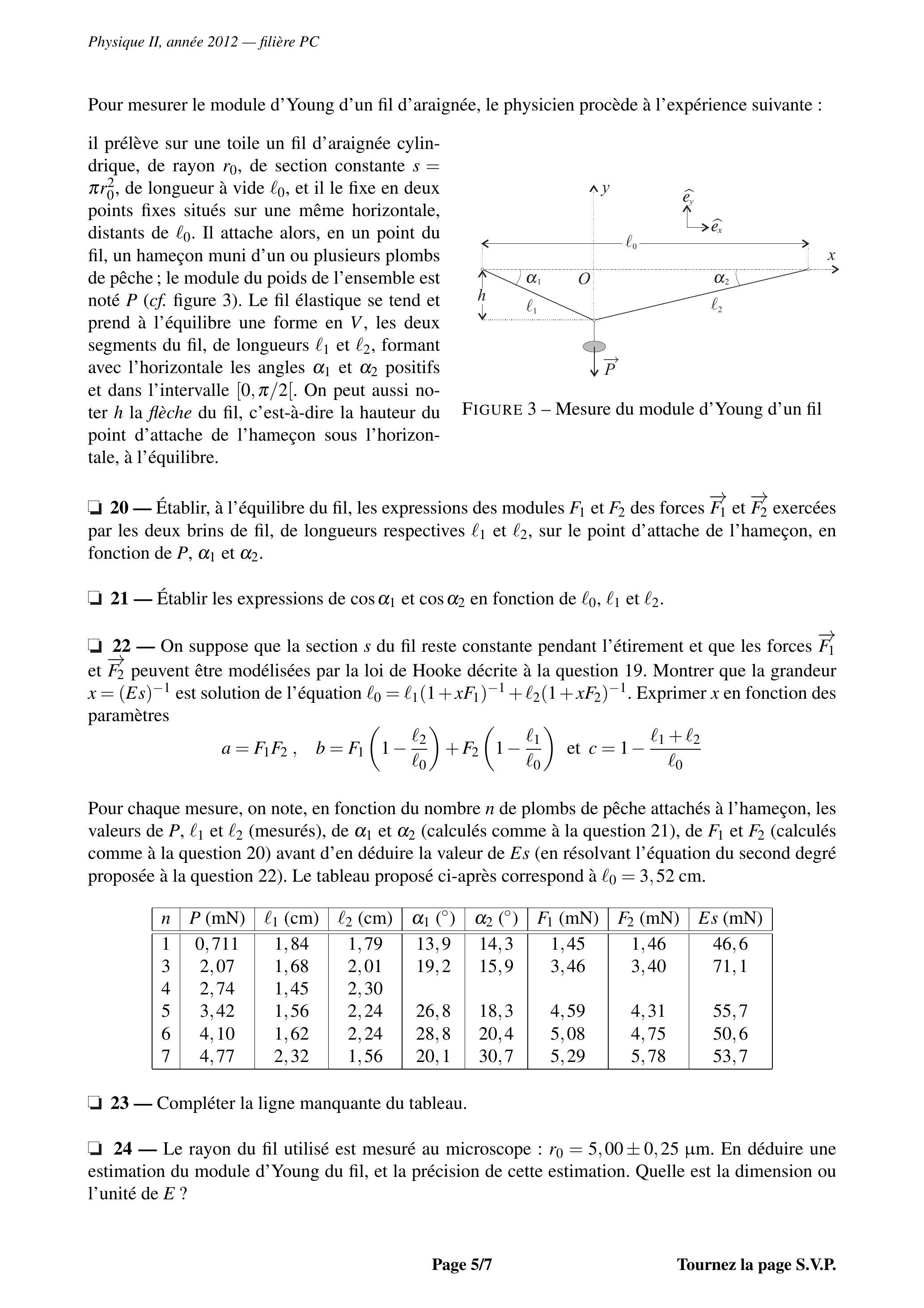 - Le rayon du fil utilisé est mesuré au microscope : . En déduire une estimation du module d'Young du fil, et la précision de cette estimation. Quelle est la dimension ou l'unité de ?