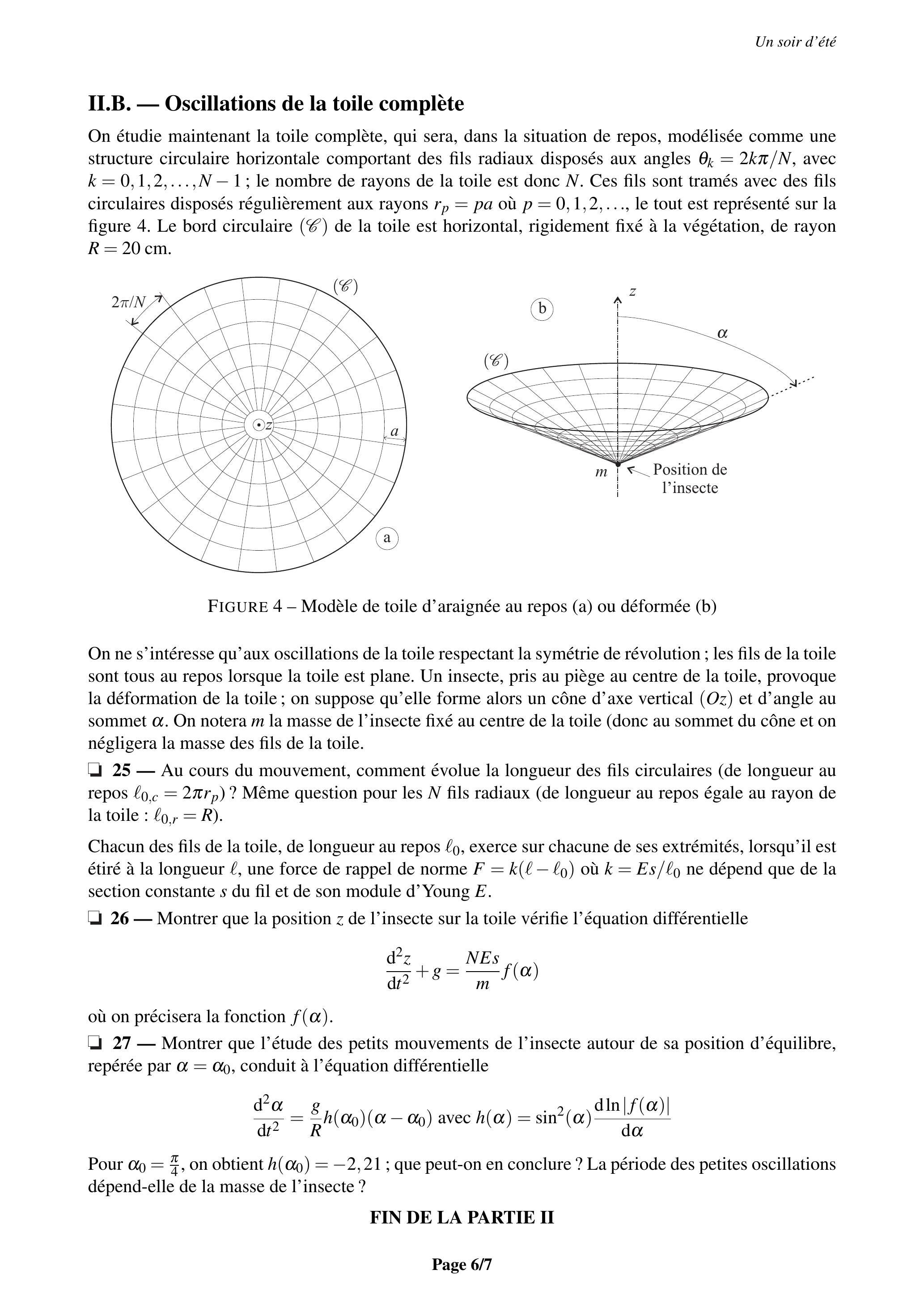 - Montrer que l'étude des petits mouvements de l'insecte autour de sa position d'équilibre, repérée par , conduit à l'équation différentielle