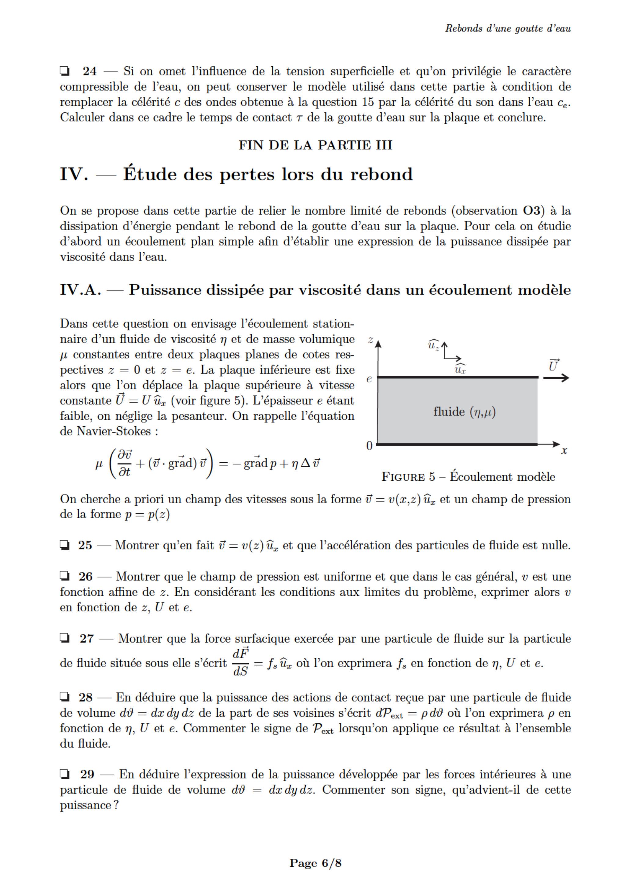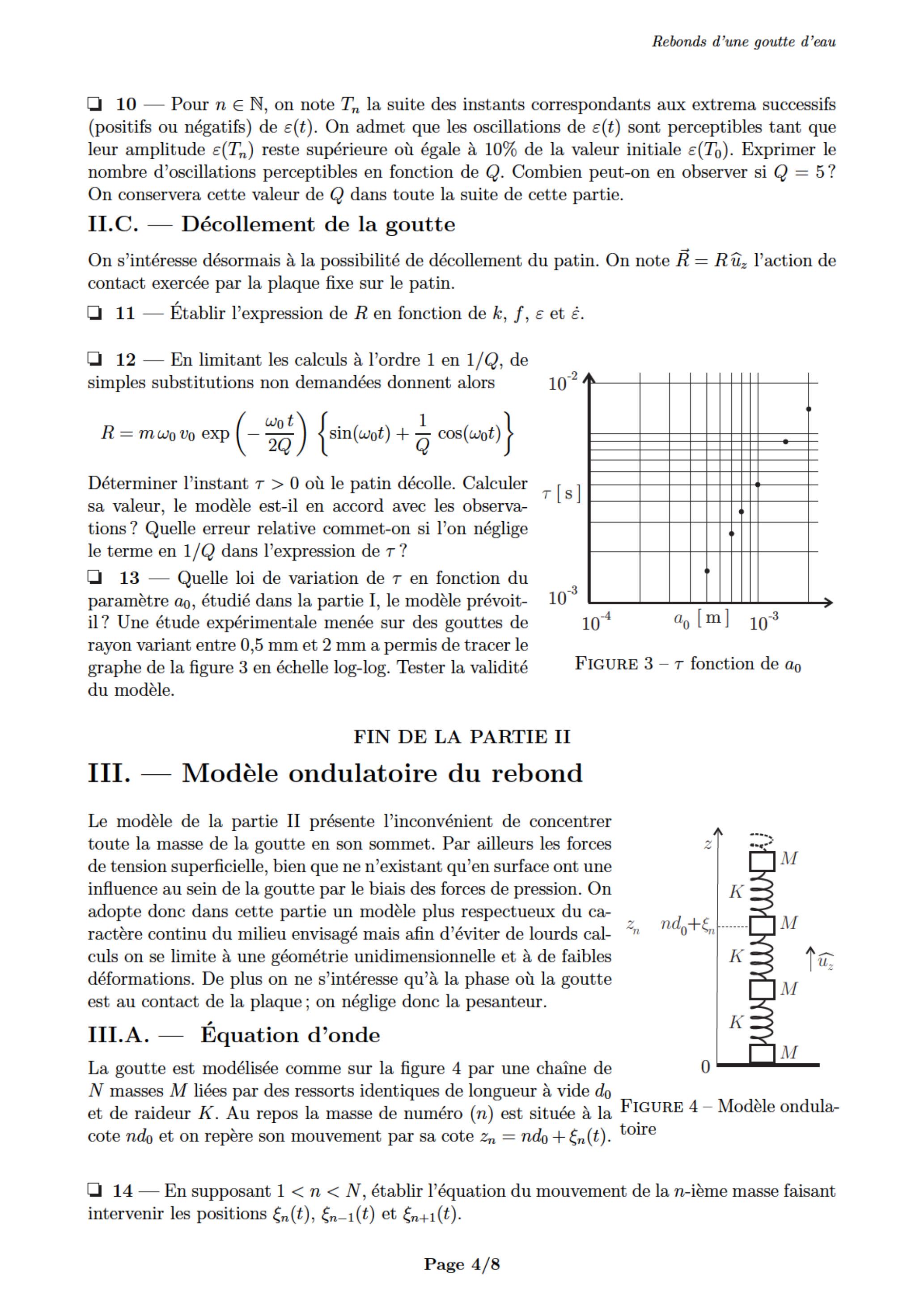 32 - Calculer en ordre de grandeur le nombre de Reynolds correspondant aux oscillations de la goutte. En quoi le modèle de la partie IV.A est-il critiquable? Pour corriger ce modèle, on admet que la viscosité réelle de l'eau doit être remplacée par une viscosité effective . Les pertes pendant le rebond permettent-elles alors d'interpréter l'observation O3?