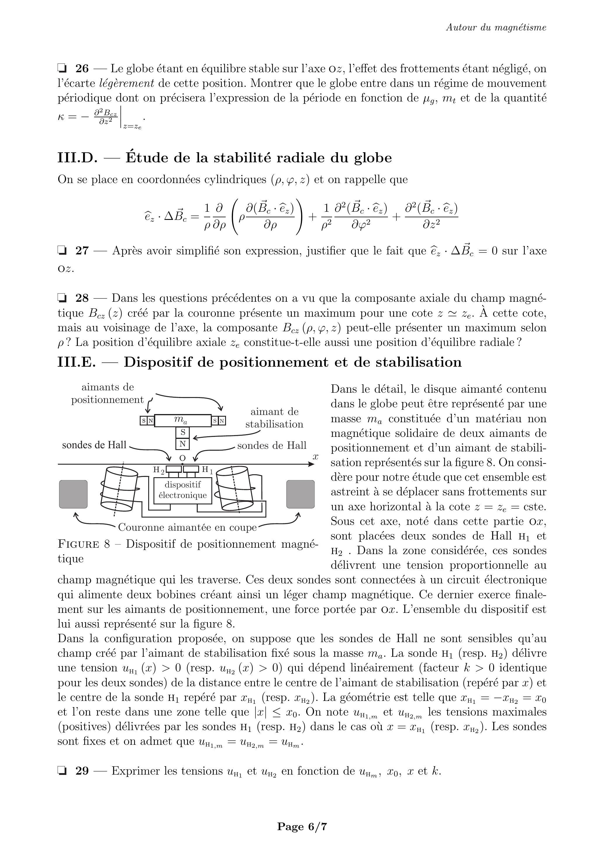 • 28 - Dans les questions précédentes on a vu que la composante axiale du champ magnétique créé par la couronne présente un maximum pour une cote . À cette cote, mais au voisinage de l'axe, la composante peut-elle présenter un maximum selon ? La position d'équilibre axiale constitue-t-elle aussi une position d'équilibre radiale?