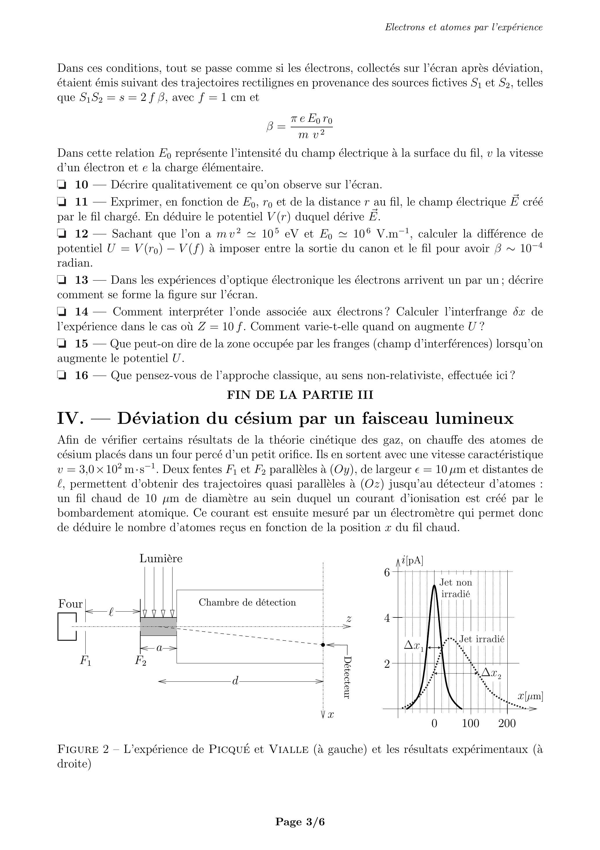 13-Dans les expériences d'optique électronique les électrons arrivent un par un; décrire comment se forme la figure sur l'écran. - 14 - Comment interpréter l'onde associée aux électrons? Calculer l'interfrange