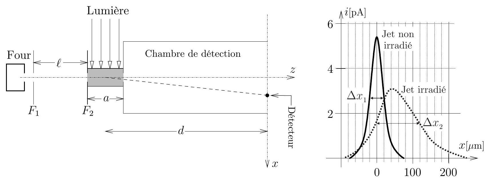 de diamètre au sein duquel un courant d'ionisation est créé par le bombardement atomique. Ce courant est ensuite mesuré par un électromètre qui permet donc de déduire le nombre d'atomes reçus en fonction de la position