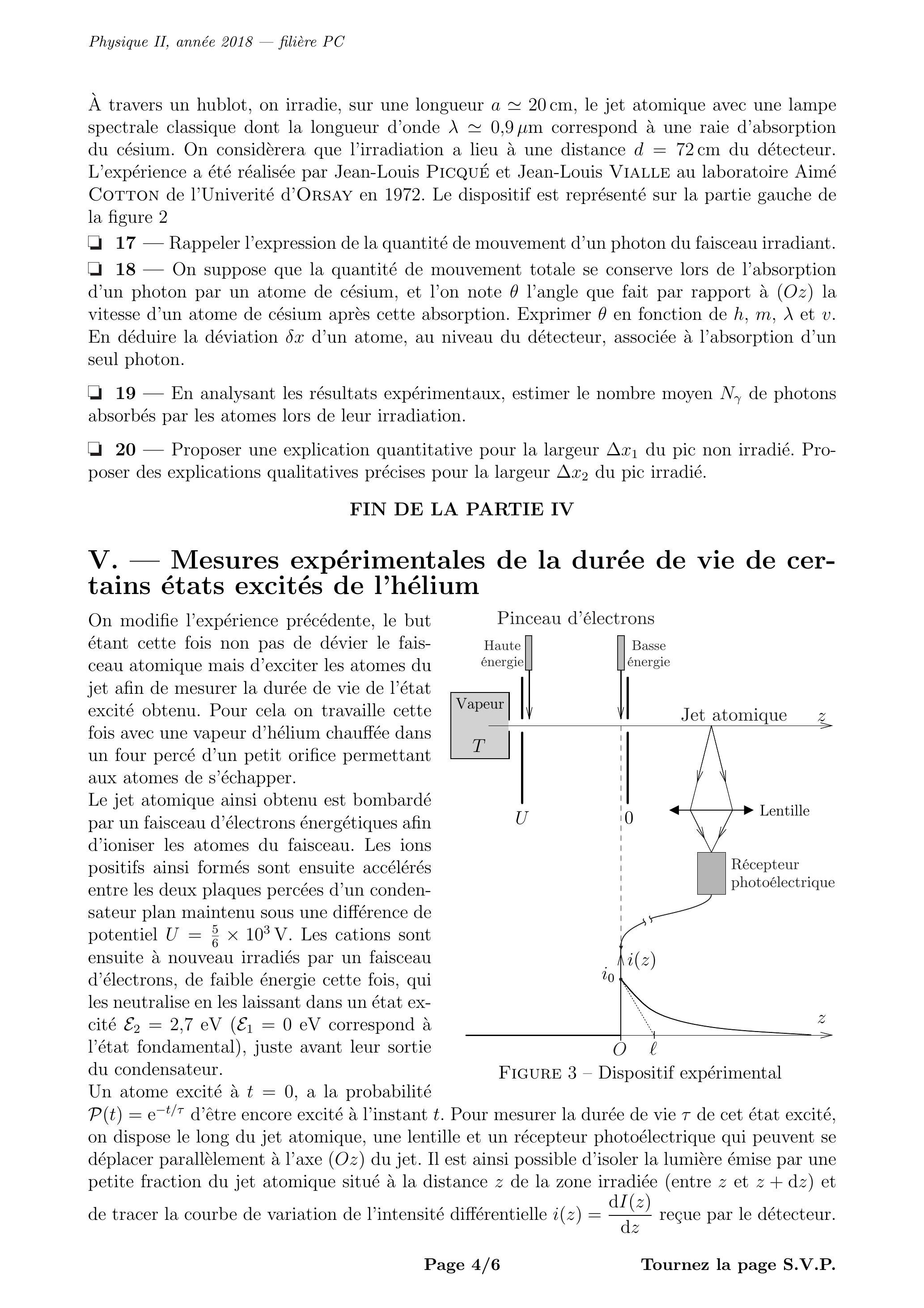 - Déterminer la probabilité qu'un atome du jet se désexcite entre les instants et . En déduire la probabilité qu'un atome du jet se désexcite entre les cotes et .