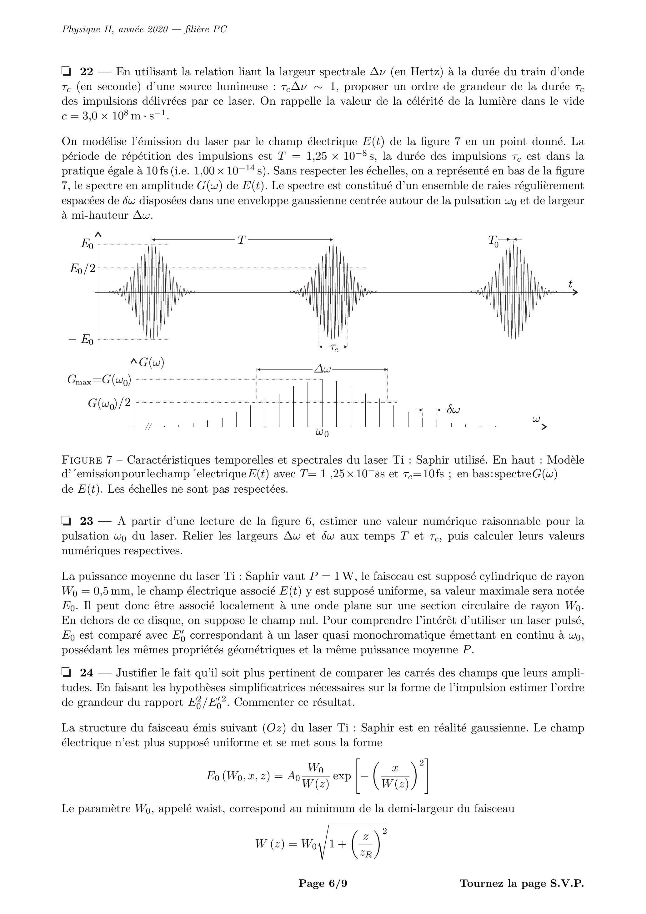 - A partir d'une lecture de la figure 6, estimer une valeur numérique raisonnable pour la pulsation du laser. Relier les largeurs et aux temps et , puis calculer leurs valeurs numériques respectives.