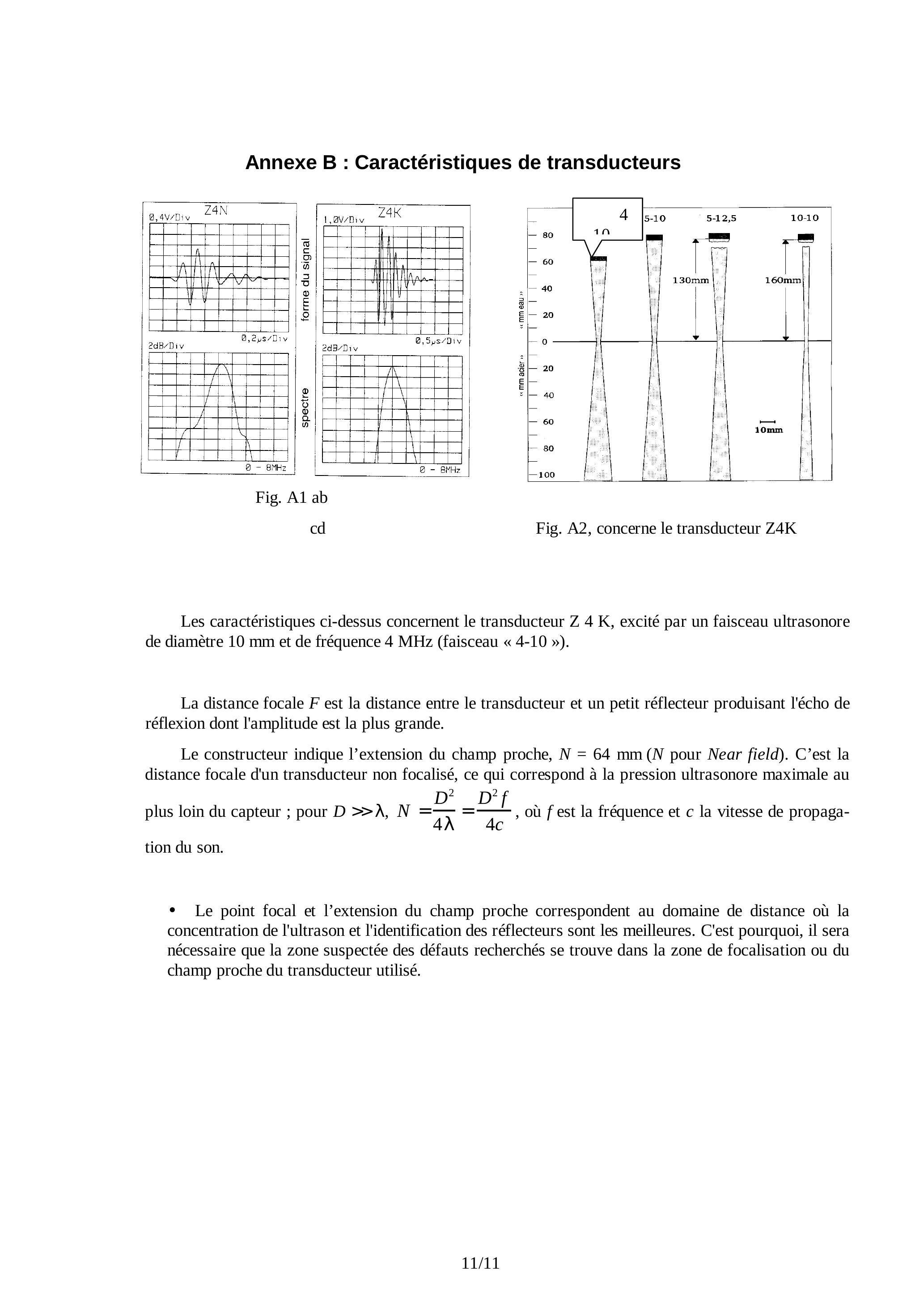 Les caractéristiques ci-dessus concernent le transducteur Z 4 K , excité par un faisceau ultrasonore de diamètre 10 mm et de fréquence 4 MHz (faisceau «4-10»).