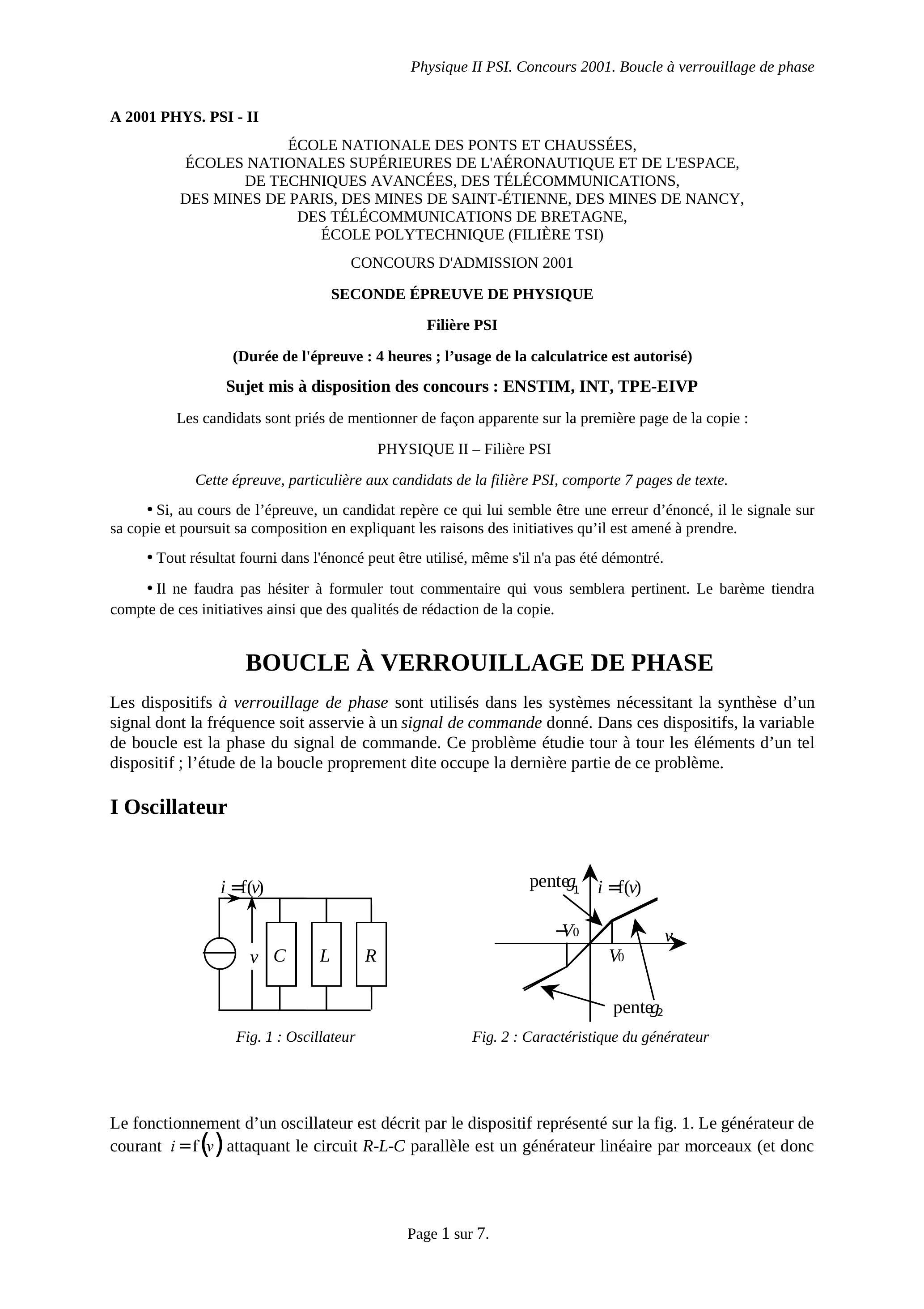 Mines Physique 2 PSI 2001 - Version Web LaTeX | WikiPrépa | WikiPrépa