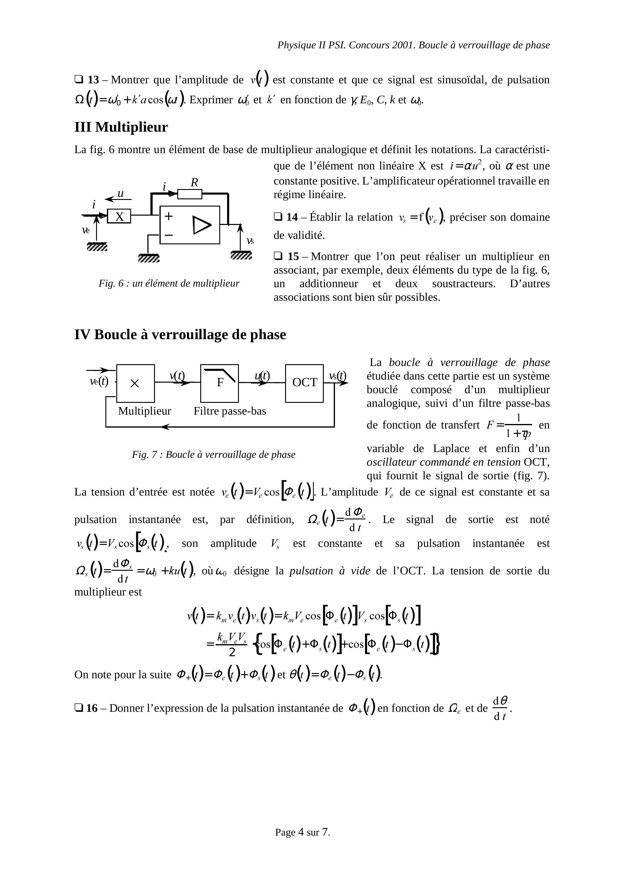 où est une constante, la pulsation à vide de l’oscillateur sinusoïdal de la partie I et la tension de commande, basse fréquence ( ).