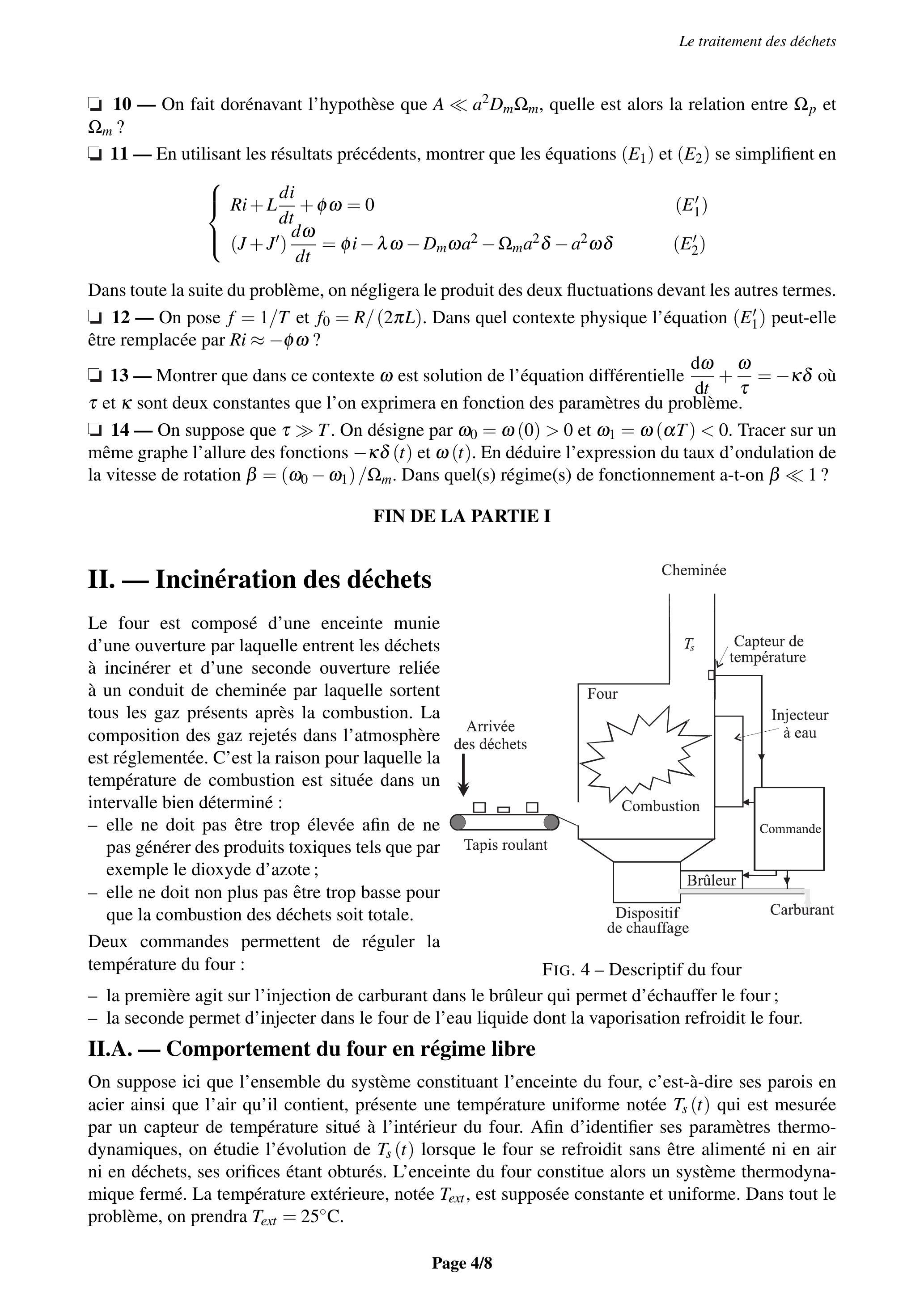 Ce problème étudie un dispositif de traitement de déchets ménagers par incinération. Il se compose de deux parties indépendantes :
