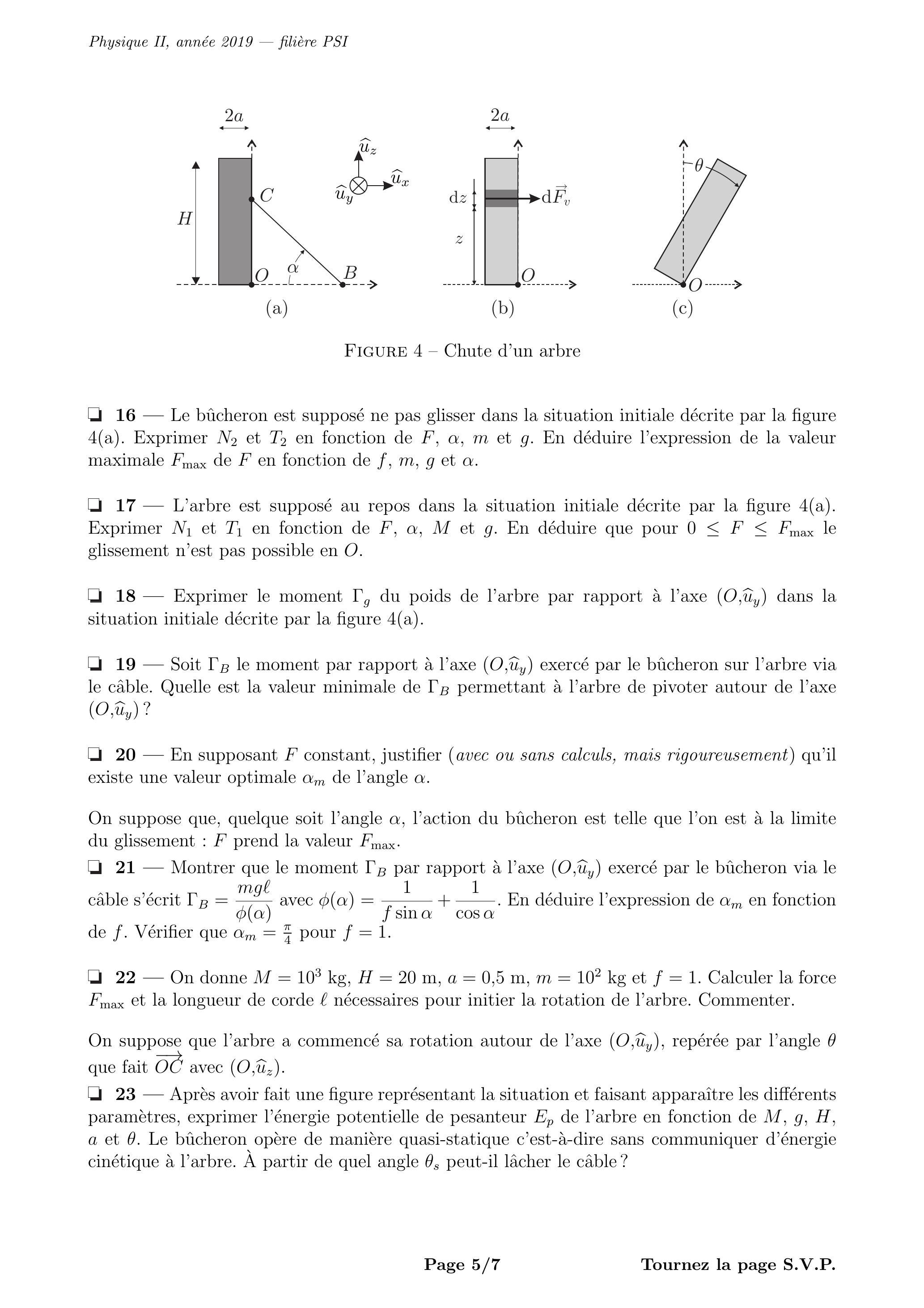 16 - Le bûcheron est supposé ne pas glisser dans la situation initiale décrite par la figure 4(a). Exprimer et en fonction de et . En déduire l'expression de la valeur maximale de en fonction de et .