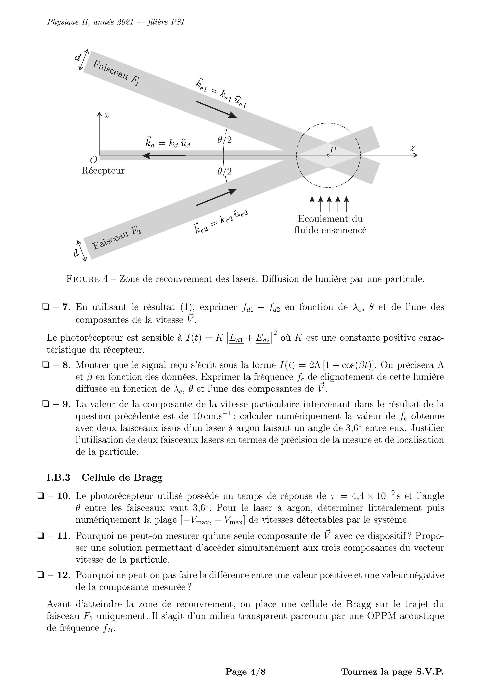 Le photorécepteur utilisé possède un temps de réponse de et l'angle entre les faisceaux vaut . Pour le laser à argon, déterminer littéralement puis numériquement la plage de vitesses détectables par le système.