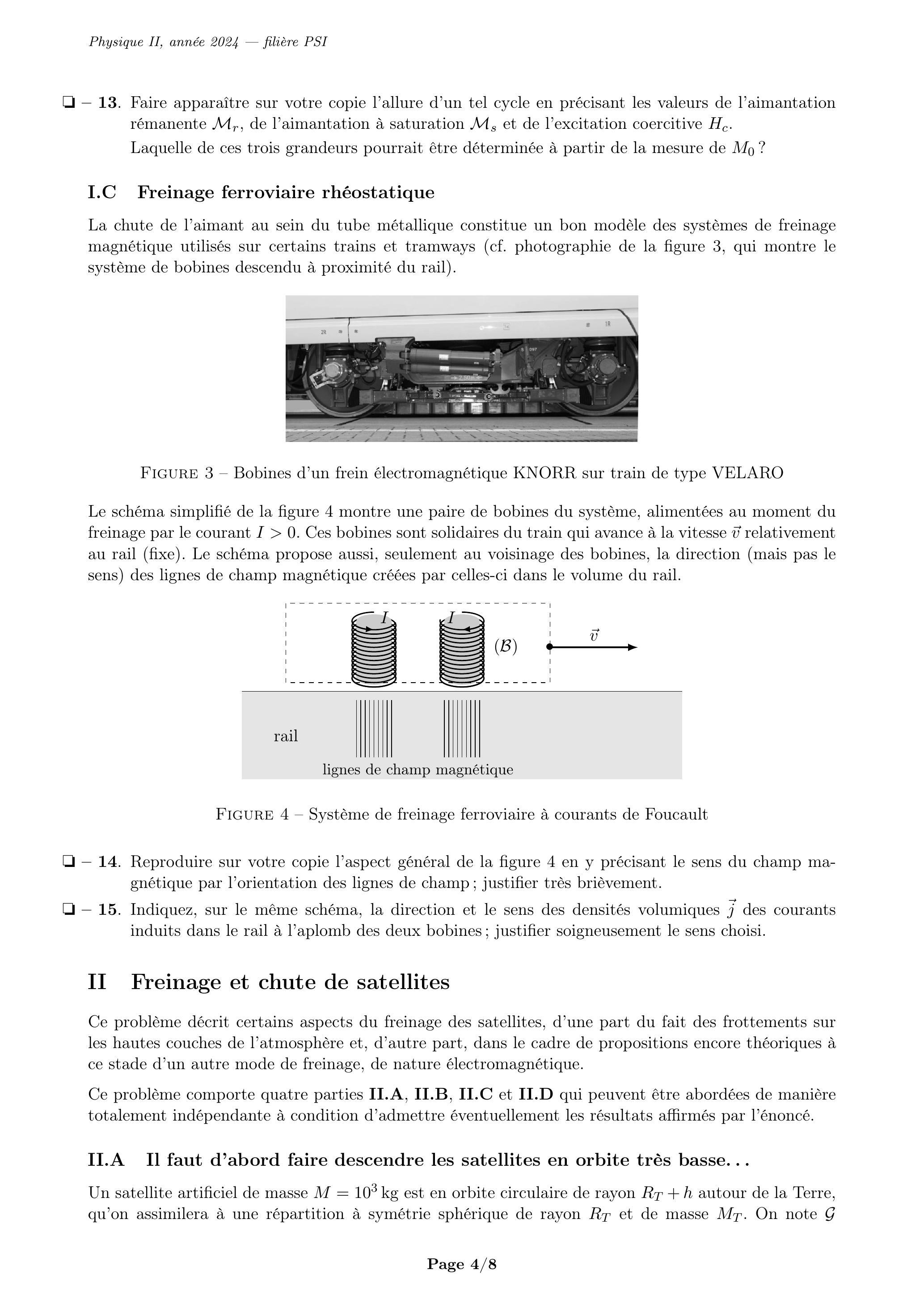Ce problème décrit certains aspects du freinage des satellites, d'une part du fait des frottements sur les hautes couches de l'atmosphère et, d'autre part, dans le cadre de propositions encore théoriques à ce stade d'un autre mode de freinage, de nature électromagnétique.