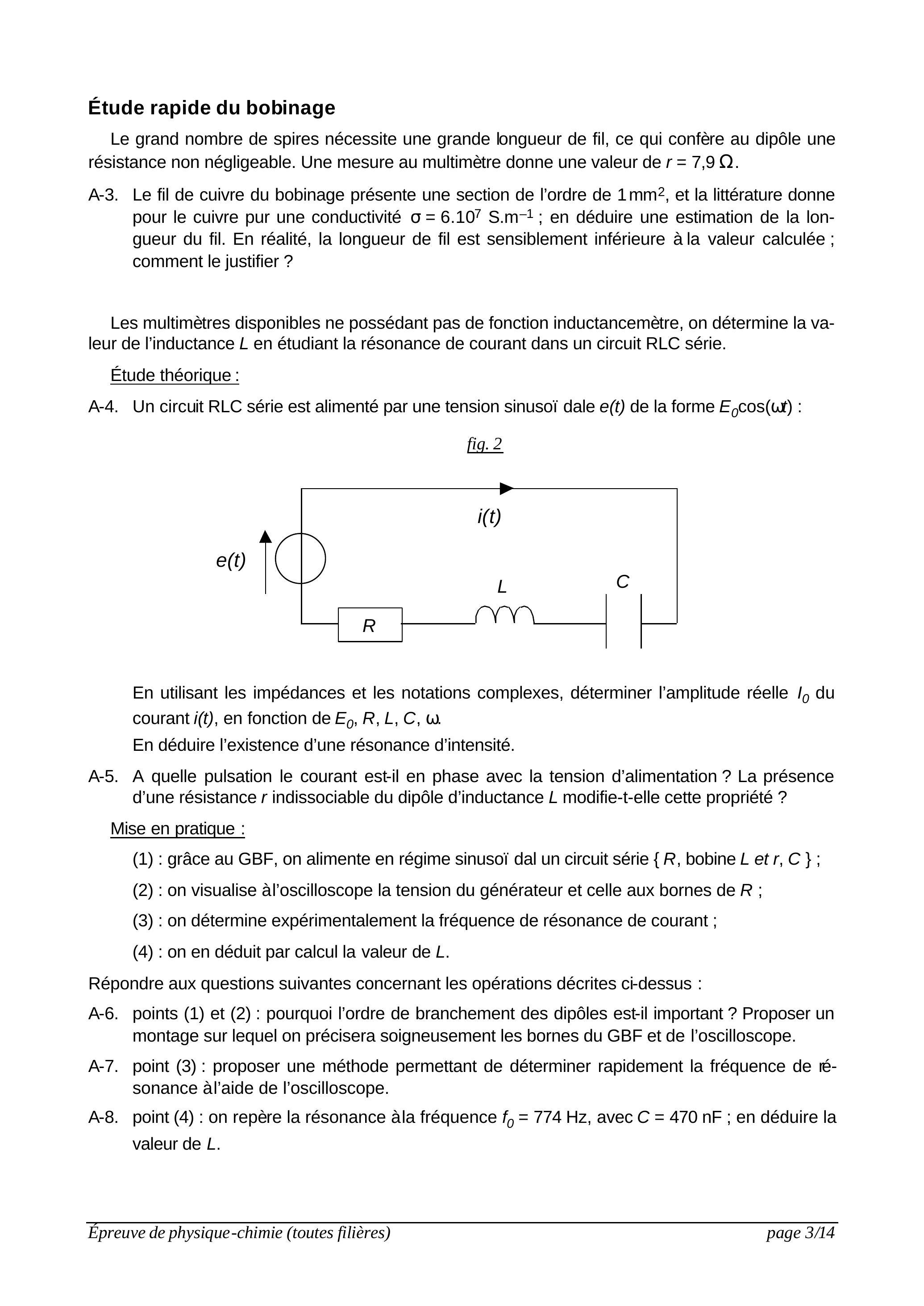 A-4. Un circuit RLC série est alimenté par une tension sinusoï dale de la forme :