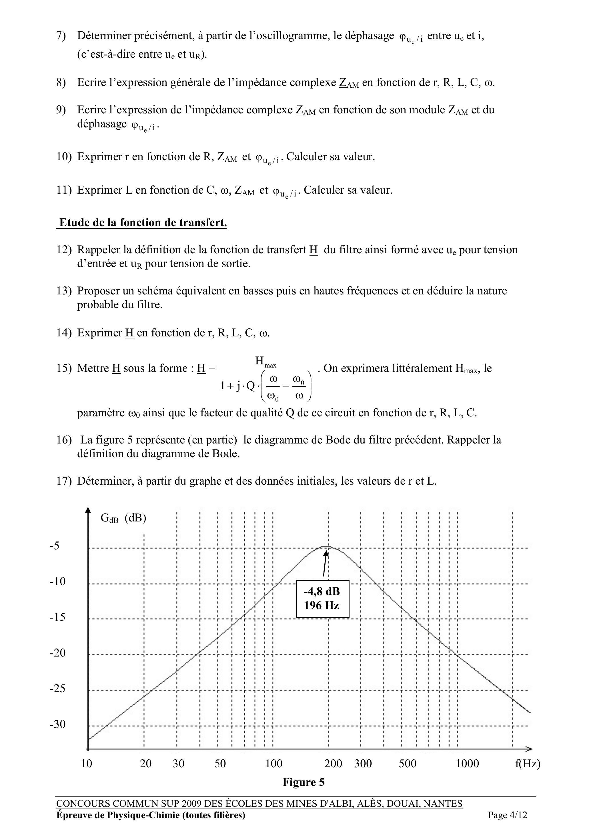 La figure 5 représente (en partie) le diagramme de Bode du filtre précédent. Rappeler la définition du diagramme de Bode.