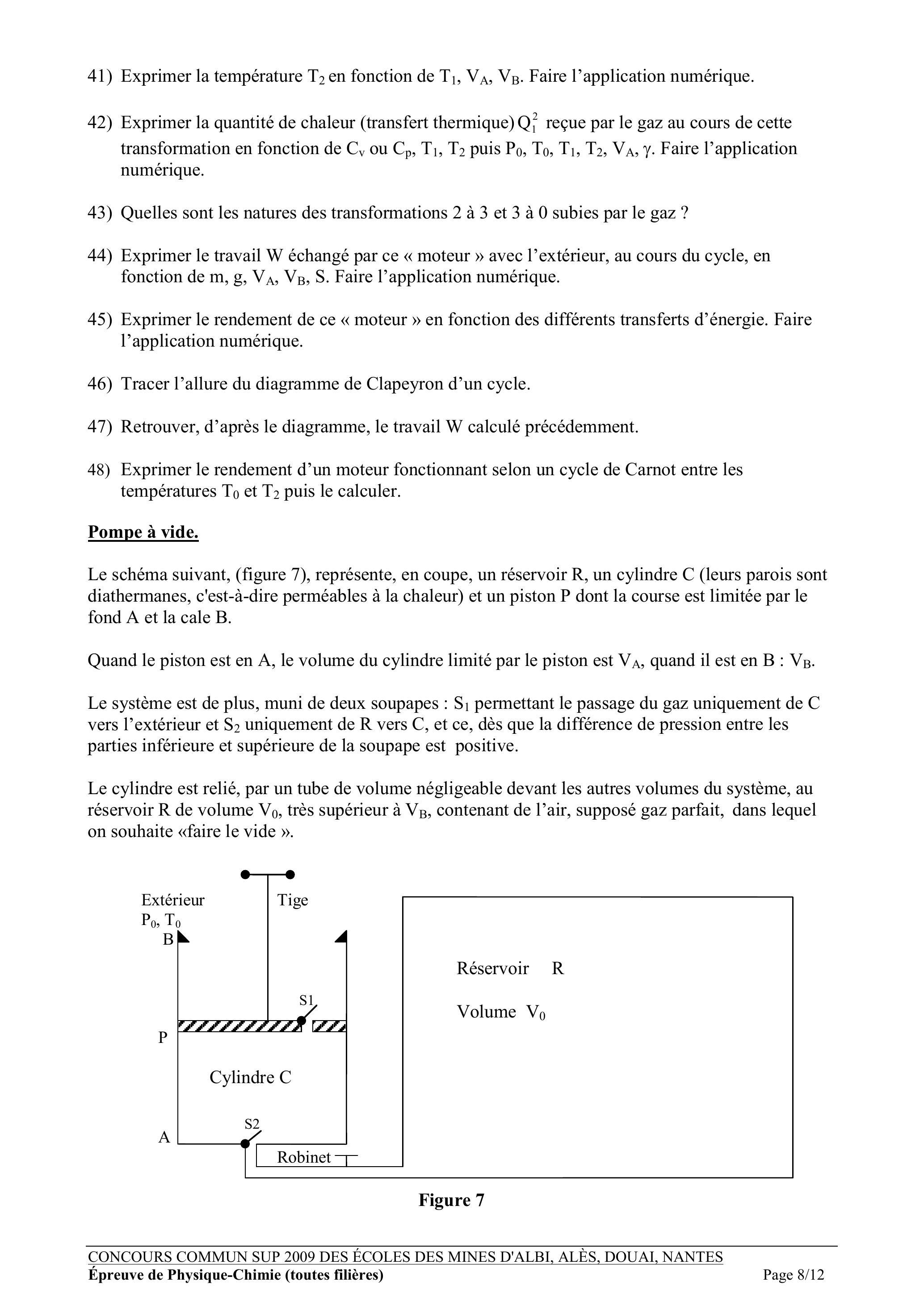 45) Exprimer le rendement de ce «moteur» en fonction des différents transferts d'énergie. Faire l'application numérique.