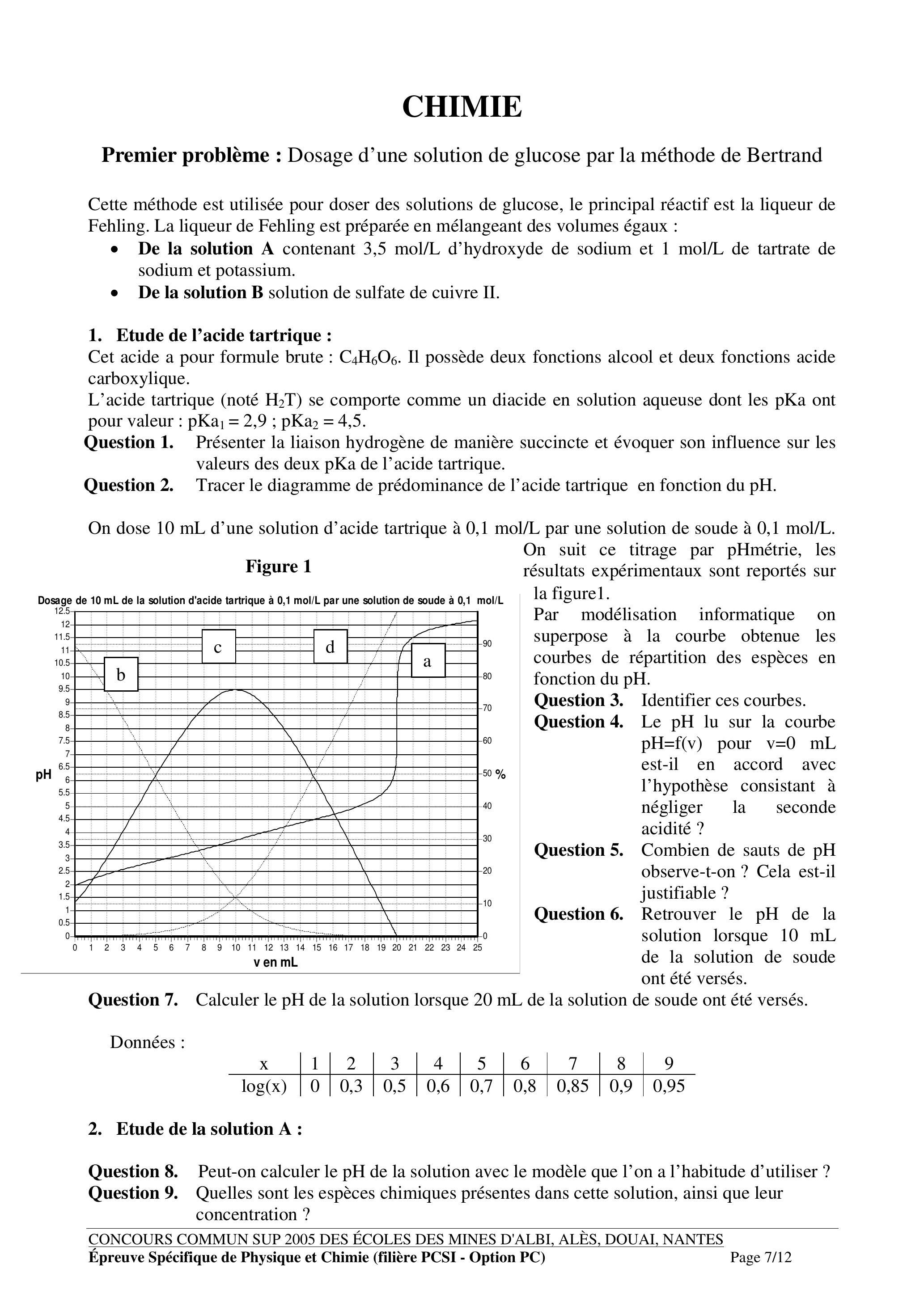Premier problème : Dosage d'une solution de glucose par la méthode de Bertrand