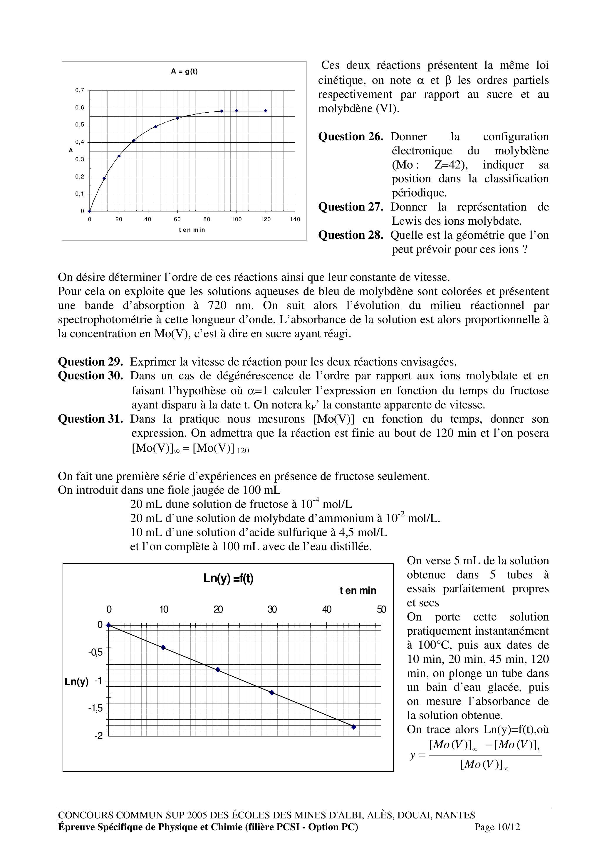 Deuxième problème : Etude de la réaction d'oxydation d'un mélange de fructose et de glucose par les ions molybdate