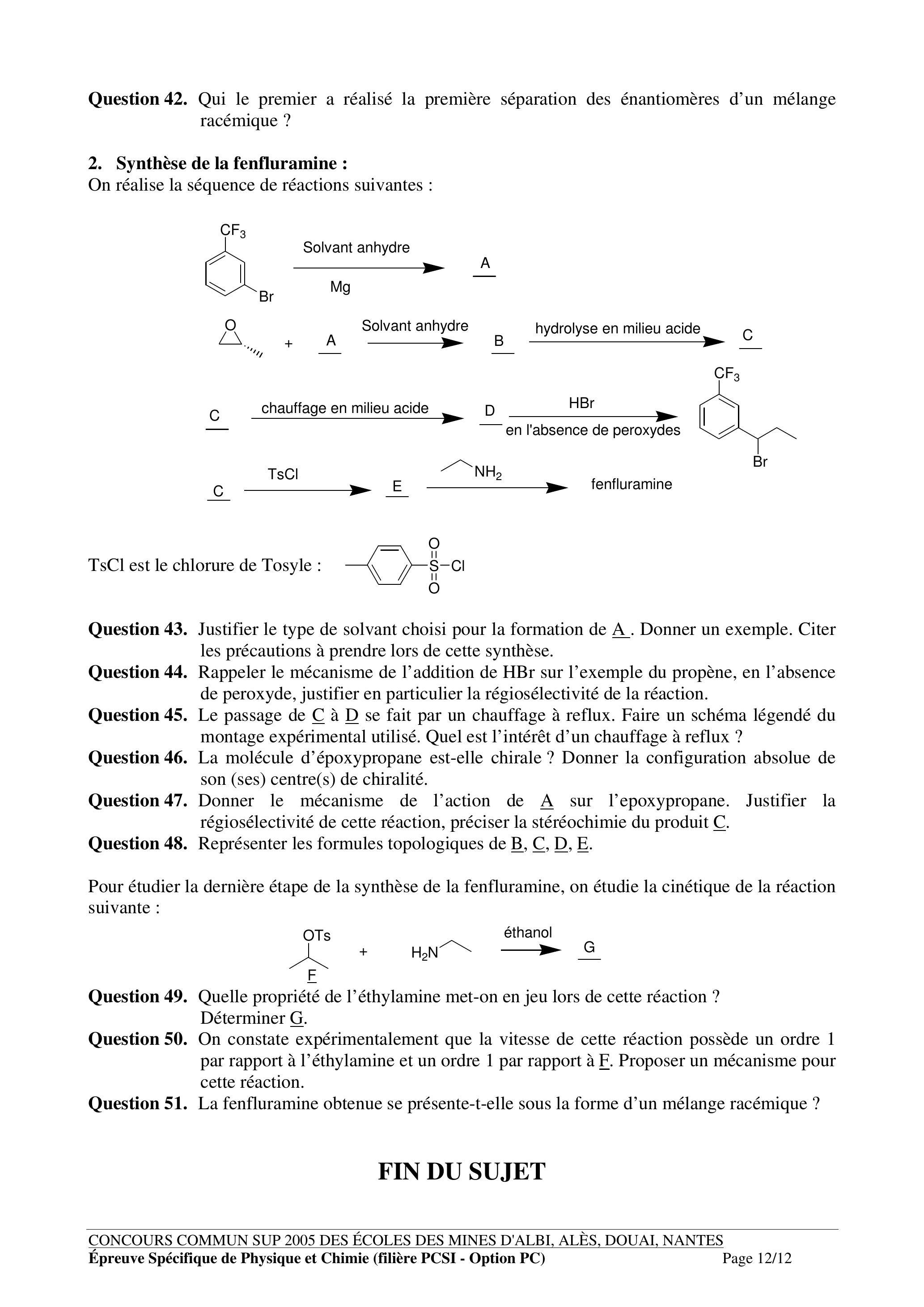 Question 51. La fenfluramine obtenue se présente-t-elle sous la forme d'un mélange racémique ?