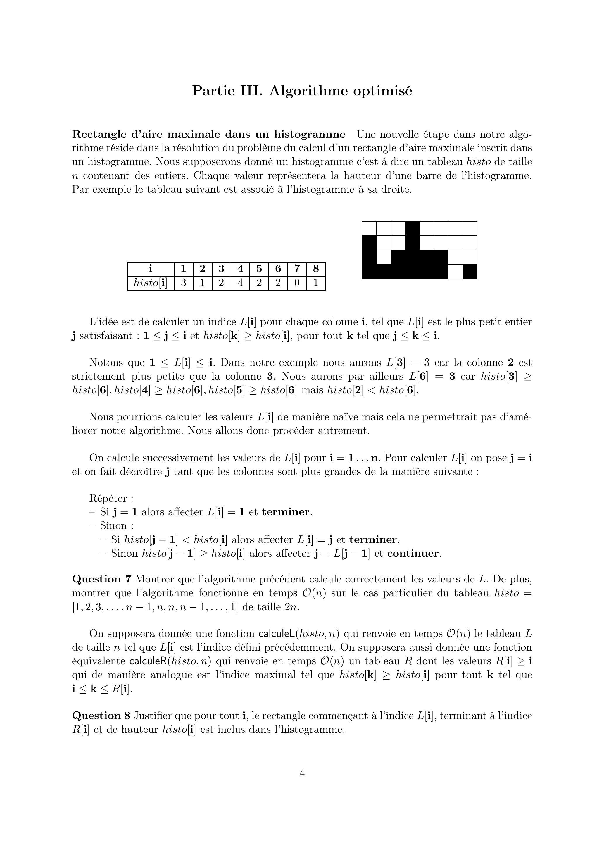 Question 9 Soit un rectangle d'aire maximale inscrit dans l'histogramme. Supposons que ce rectangle commence à l'indice