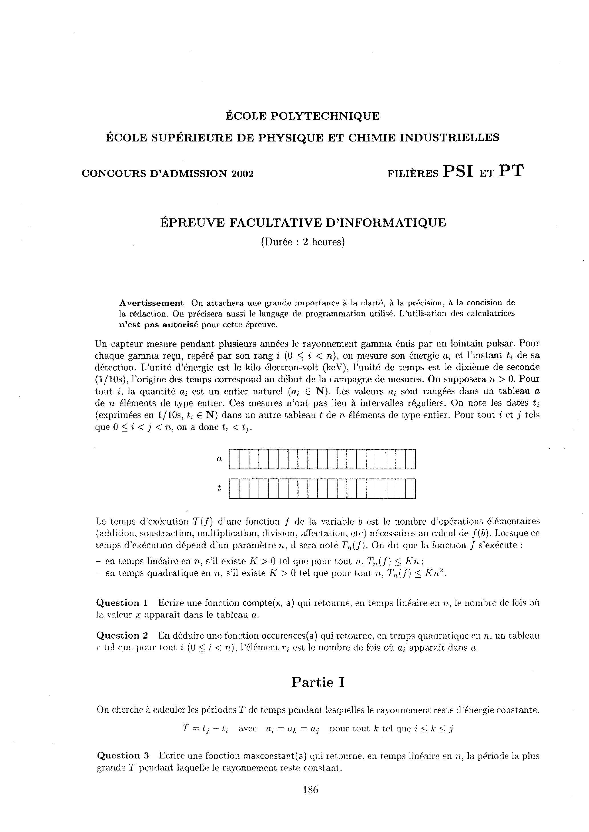 X ENS Informatique Commune PSI PT 2002 - Version Web LaTeX | WikiPrépa | WikiPrépa