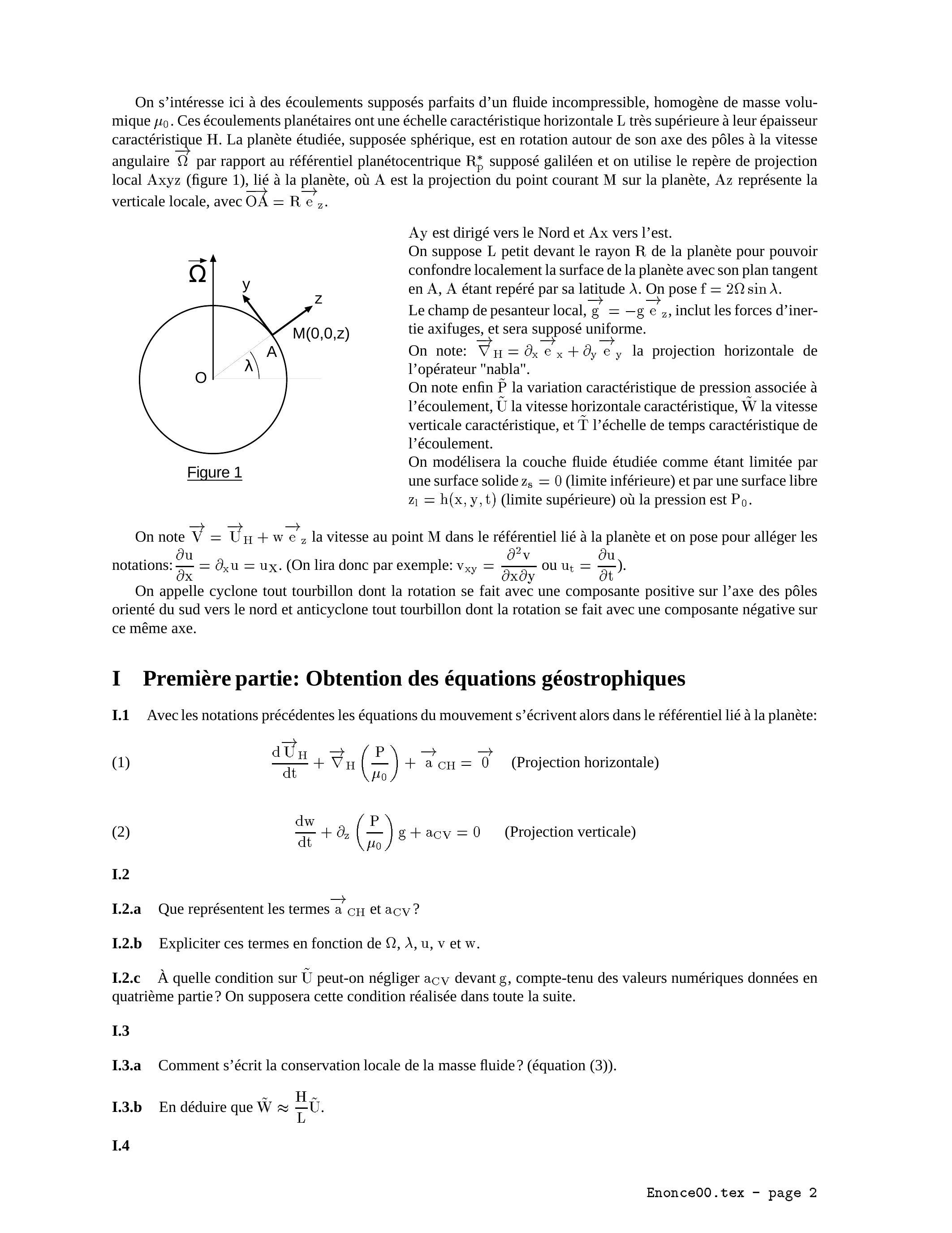 Dans la première partie du problème, un établit les équations de base de la dynamique des atmosphères planétaires.