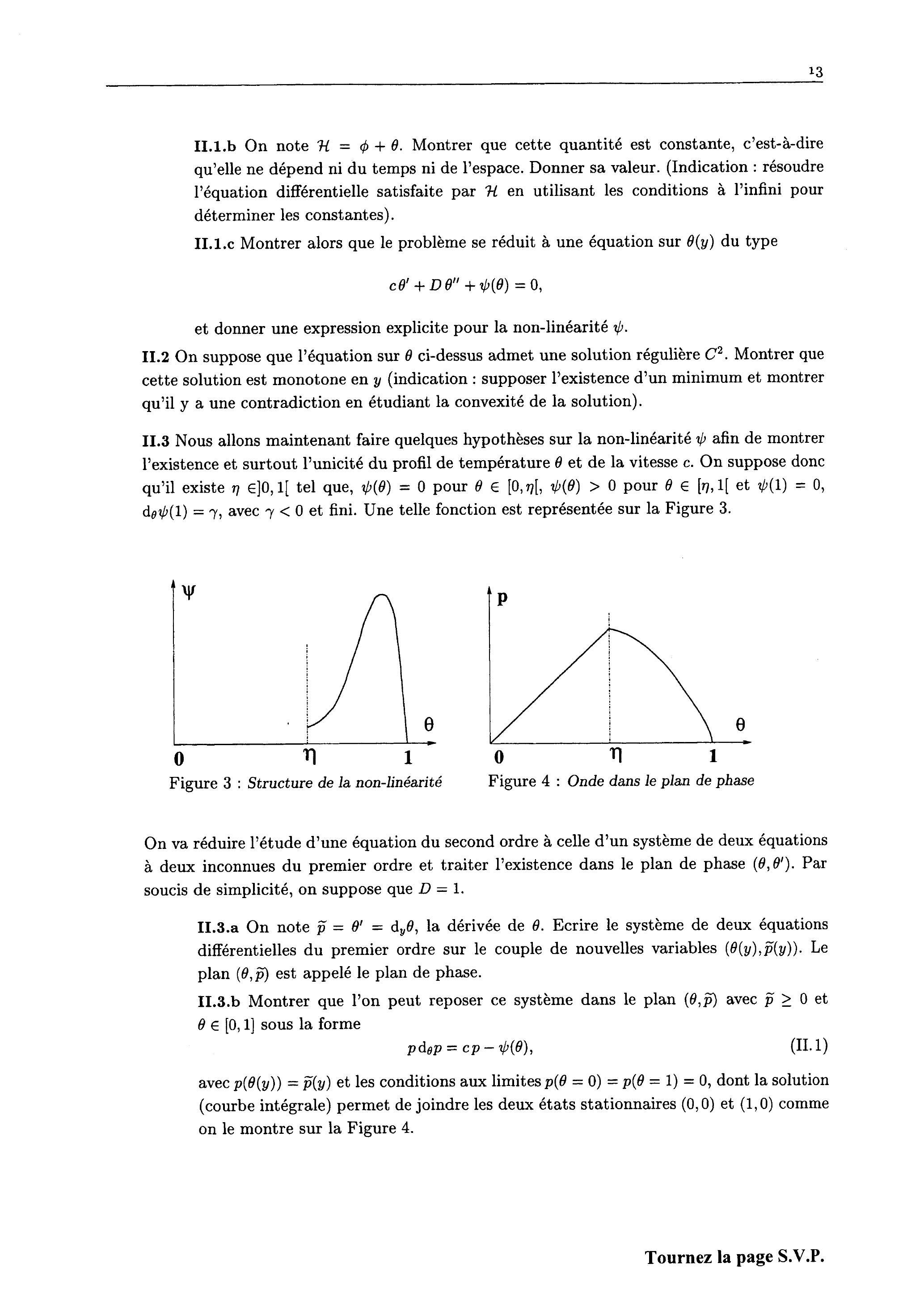 II. 3 Il s'agit de montrer que l'équation simplifiée (II.5) est un "bon modèle" et d'en déduire le comportement qualitatif général de la solution de (II.1-II.2).