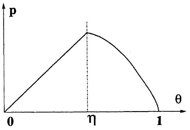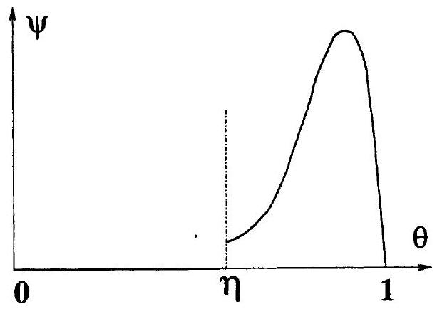 II. 3 Nous allons maintenant faire quelques hypothèses sur la non-linéarité afin de montrer l'existence et surtout l'unicité du profil de température et de la vitesse . On suppose donc qu'il existe tel que, pour pour et , , avec et fini. Une telle fonction est représentée sur la Figure 3.