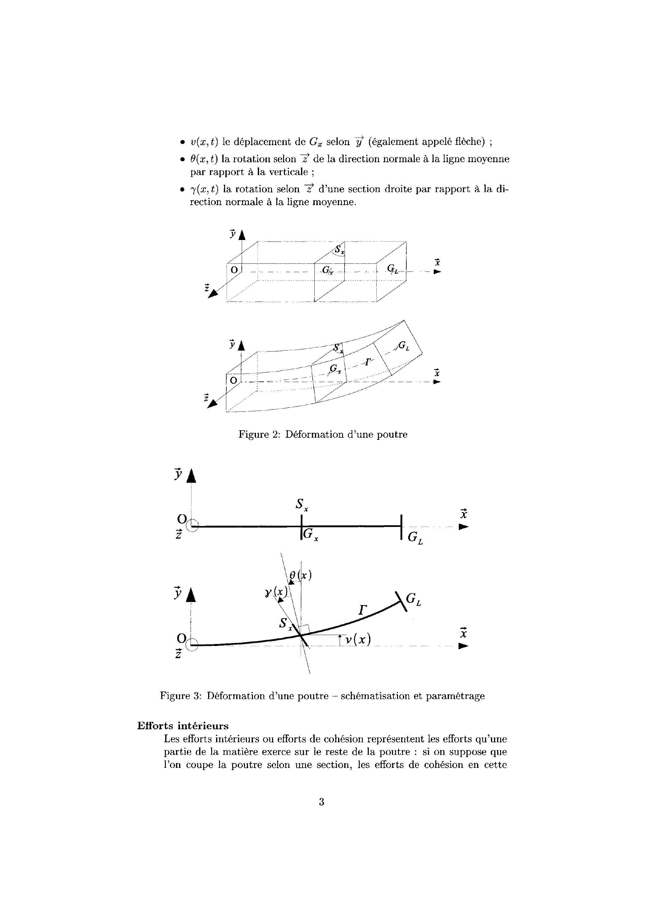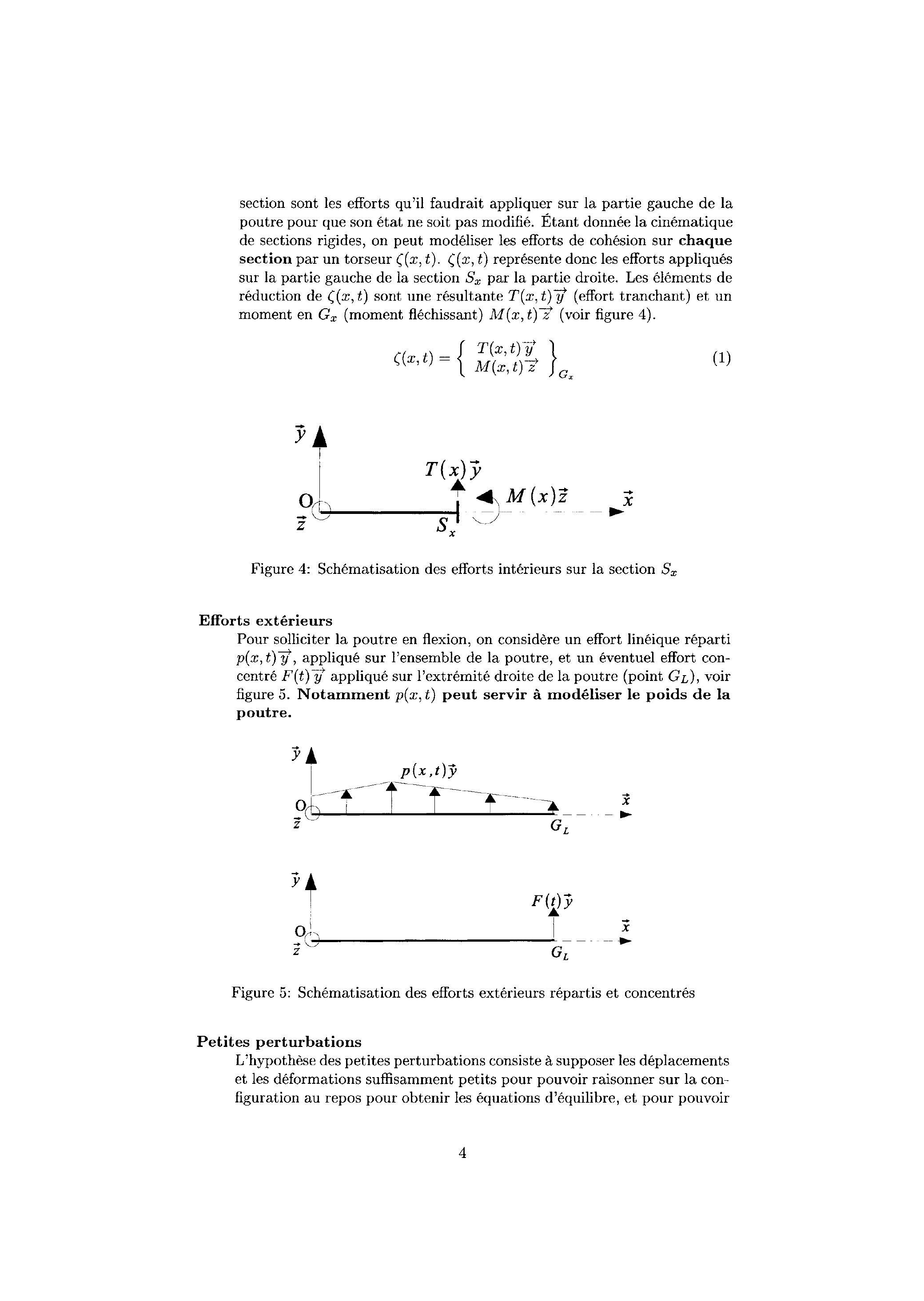 section sont les efforts qu'il faudrait appliquer sur la partie gauche de la poutre pour que son état ne soit pas modifié. Étant donnée la cinématique de sections rigides, on peut modéliser les efforts de cohésion sur chaque section par un torseur représente donc les efforts appliqués sur la partie gauche de la section par la partie droite. Les éléments de réduction de sont une résultante (effort tranchant) et un moment en (moment fléchissant) (voir figure 4).