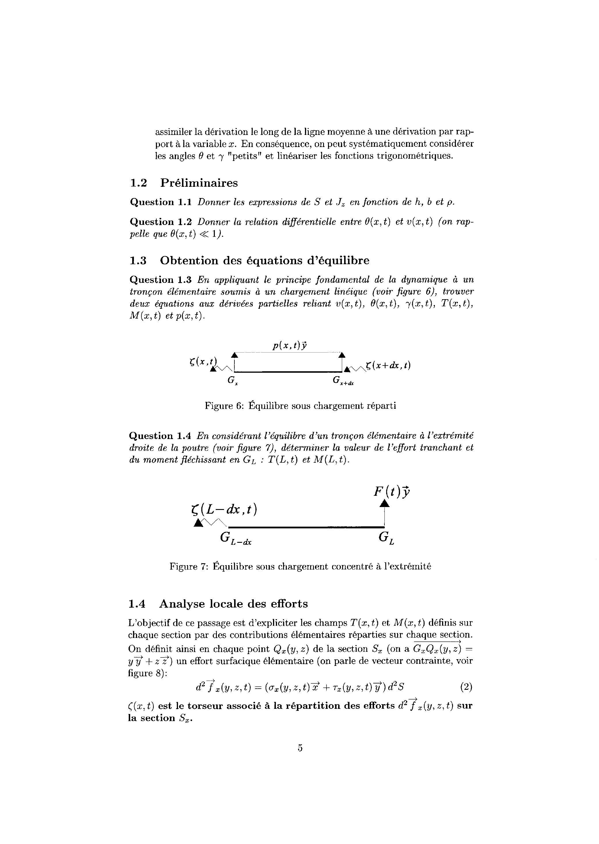Question 1.12 Mettre les équations obtenues aux questions 1.3, 1.4 et 1.7 dans le cadre des hypothèses d'Euler-Bernoulli (conserver les termes dynamiques). Se ramener à des équations différentielles faisant intervenir les inconnues et (penser à donner également les conditions aux limites).