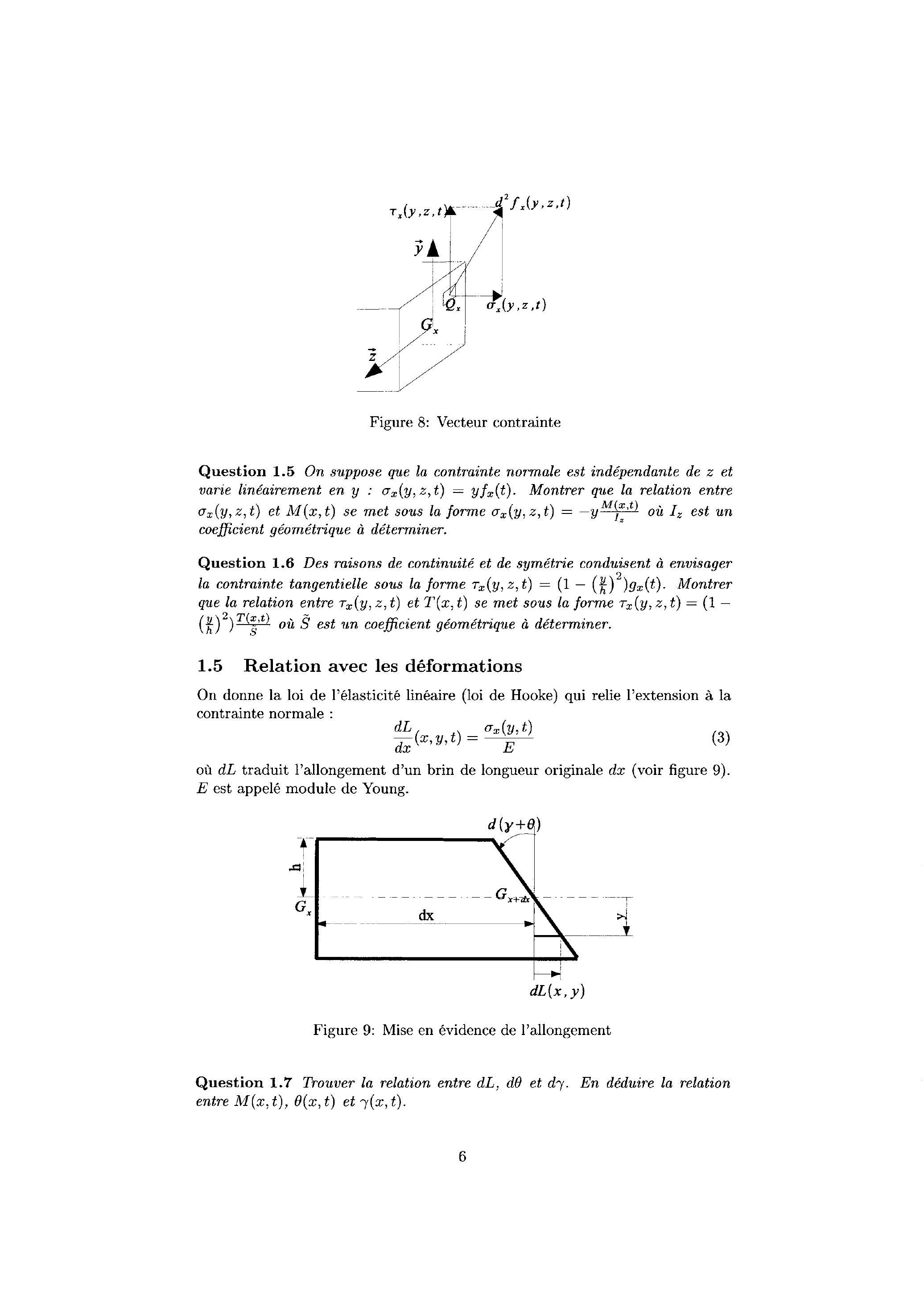 Question 1.3 En appliquant le principe fondamental de la dynamique à un tronçon élémentaire soumis à un chargement linéique (voir figure 6), trouver deux équations aux dérivées partielles reliant , et .