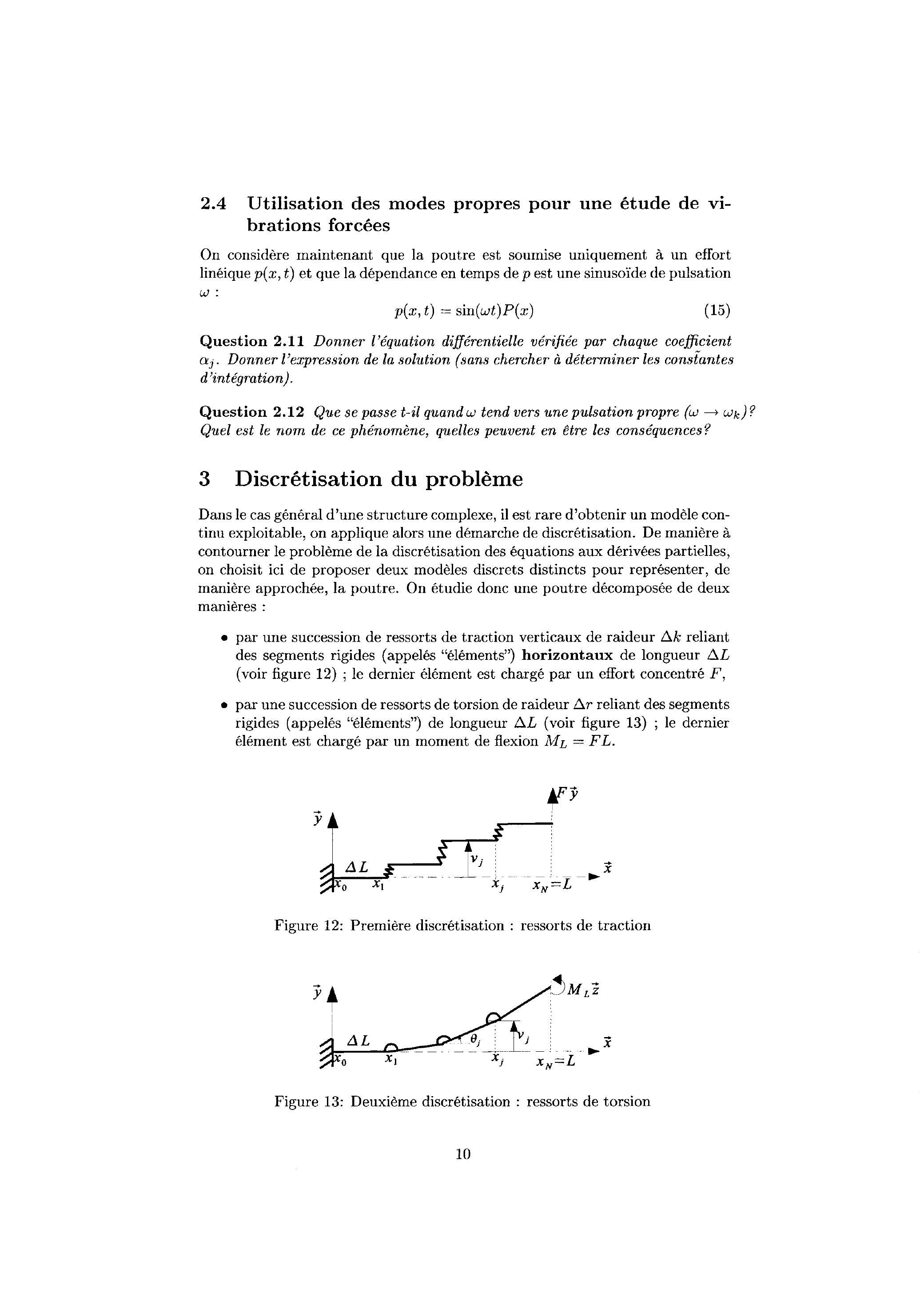 Dans le cas général d'une structure complexe, il est rare d'obtenir un modèle continu exploitable, on applique alors une démarche de discrétisation. De manière à contourner le problème de la discrétisation des équations aux dérivées partielles, on choisit ici de proposer deux modèles discrets distincts pour représenter, de manière approchée, la poutre. On étudie donc une poutre décomposée de deux manières :