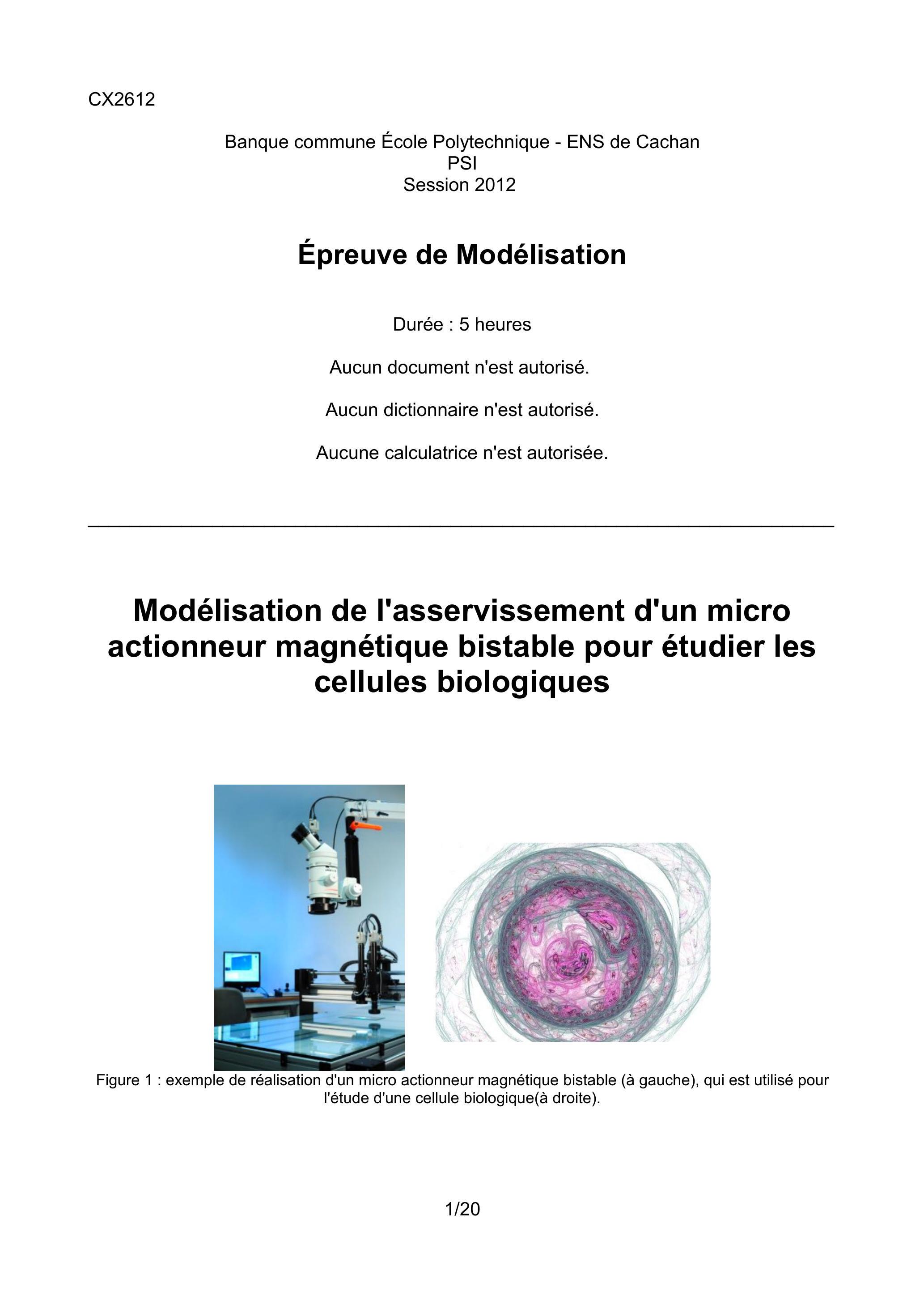 X ENS Modélisation PSI 2012 - Version Web LaTeX | WikiPrépa | WikiPrépa