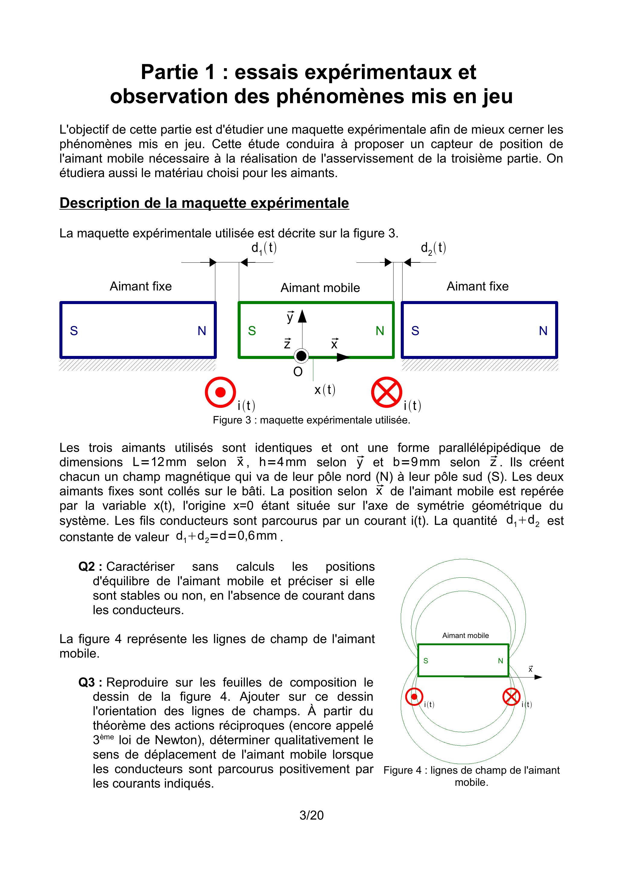 L'objectif de cette partie est d'étudier une maquette expérimentale afin de mieux cerner les phénomènes mis en jeu. Cette étude conduira à proposer un capteur de position de l'aimant mobile nécessaire à la réalisation de l'asservissement de la troisième partie. On étudiera aussi le matériau choisi pour les aimants.