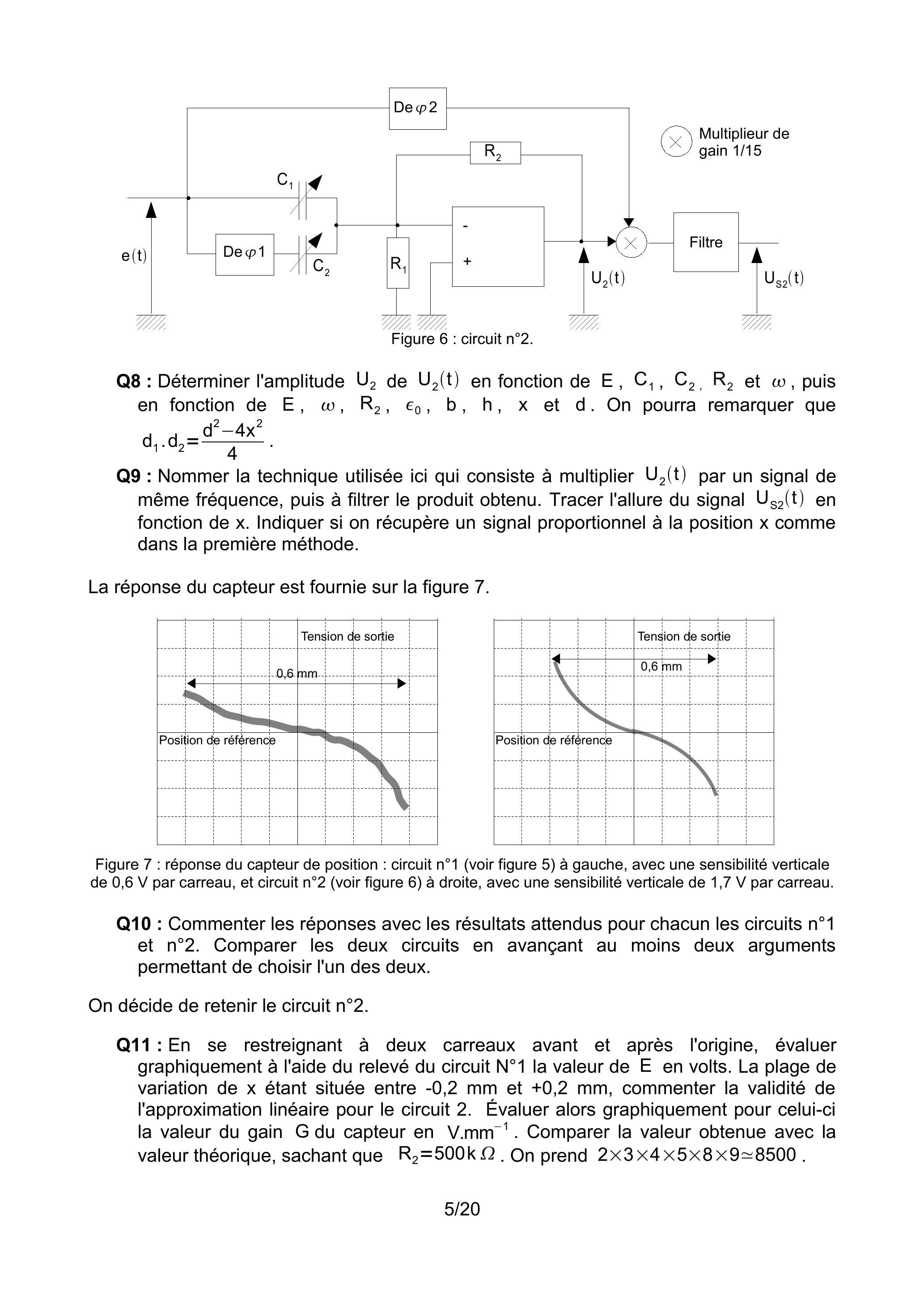 Q9 : Nommer la technique utilisée ici qui consiste à multiplier par un signal de même fréquence, puis à filtrer le produit obtenu. Tracer l'allure du signal en fonction de x. Indiquer si on récupère un signal proportionnel à la position x comme dans la première méthode.