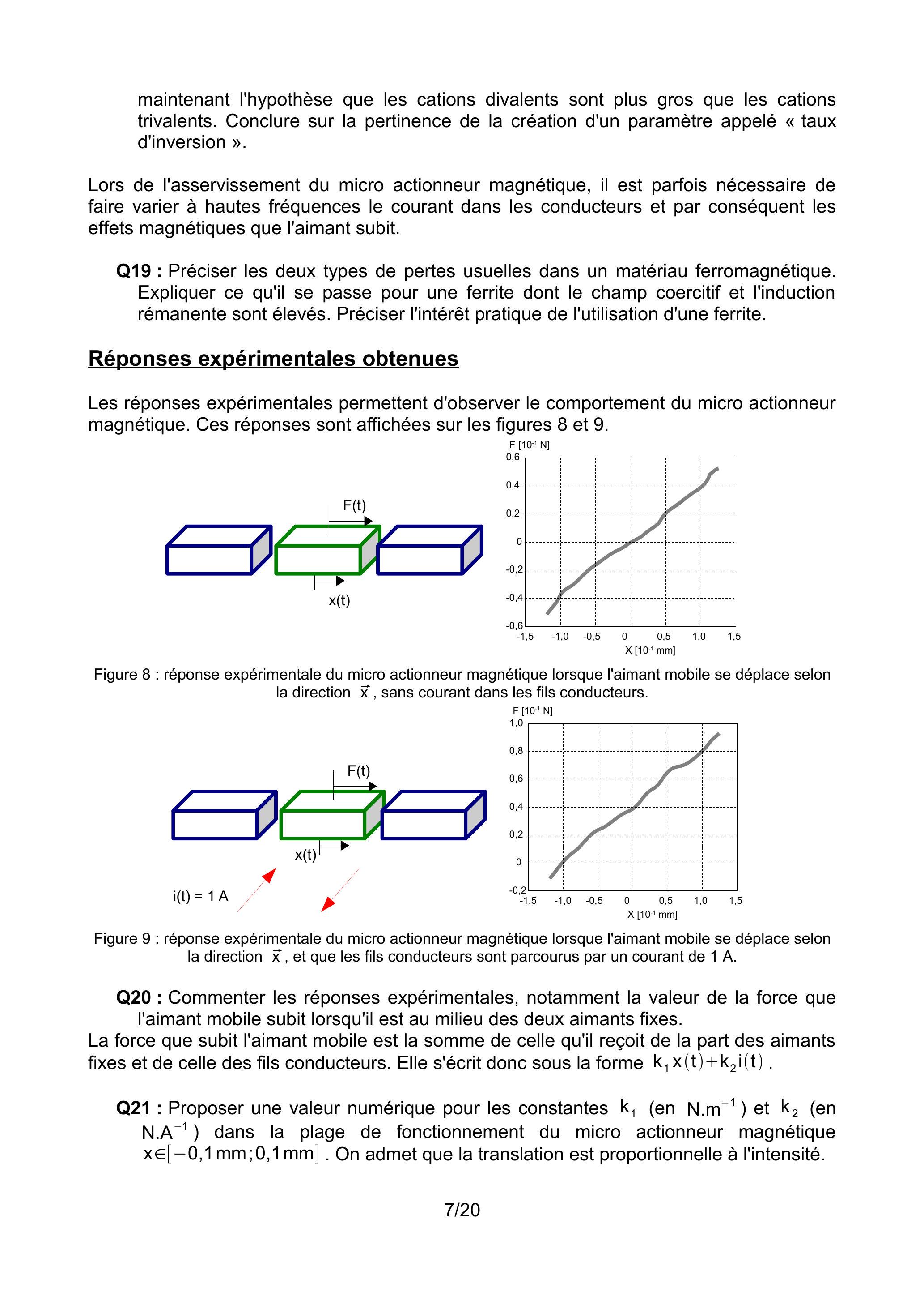 Q21 : Proposer une valeur numérique pour les constantes (en N.m ) et (en ) dans la plage de fonctionnement du micro actionneur magnétique . On admet que la translation est proportionnelle à l'intensité.