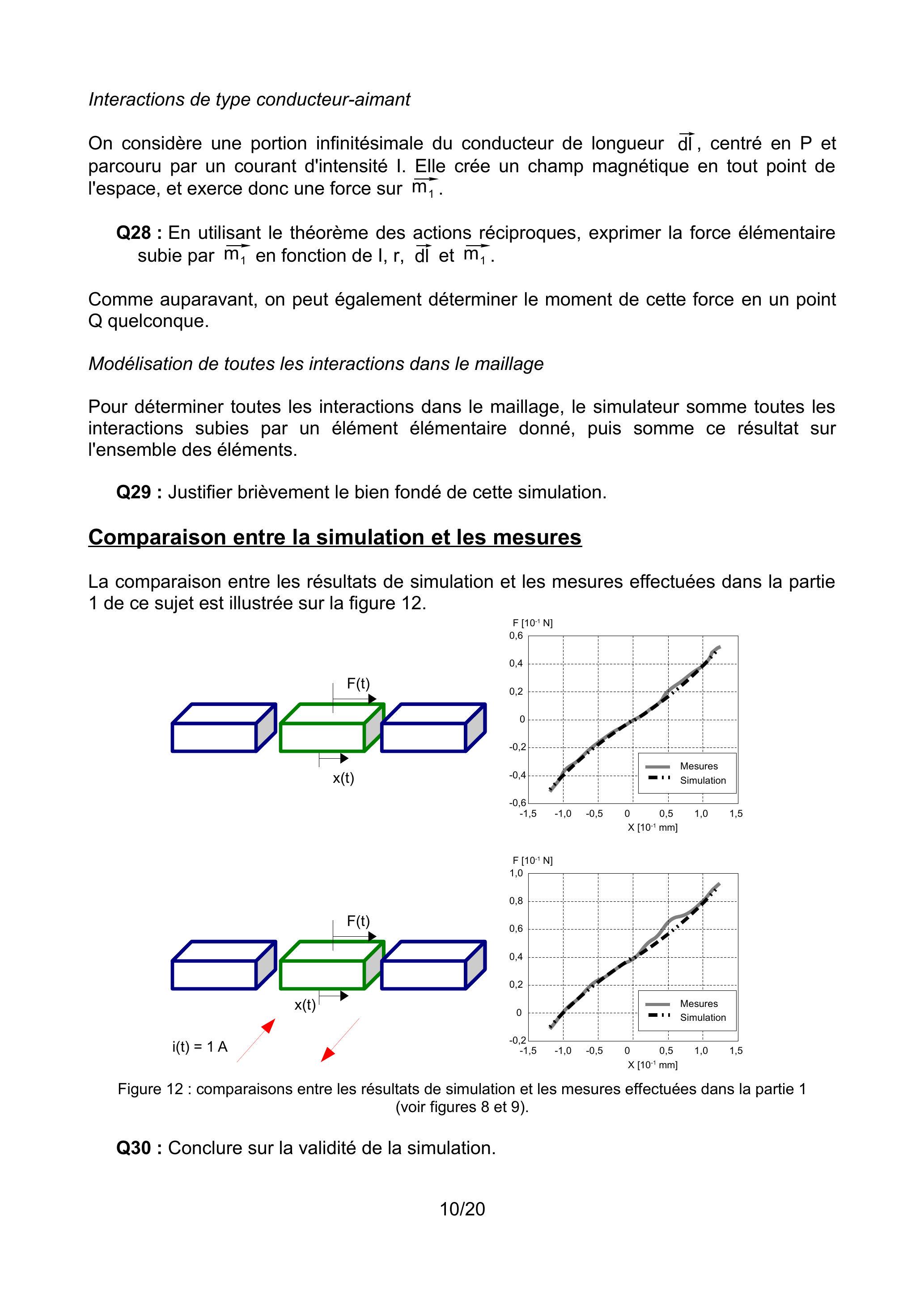 La comparaison entre les résultats de simulation et les mesures effectuées dans la partie 1 de ce sujet est illustrée sur la figure 12.