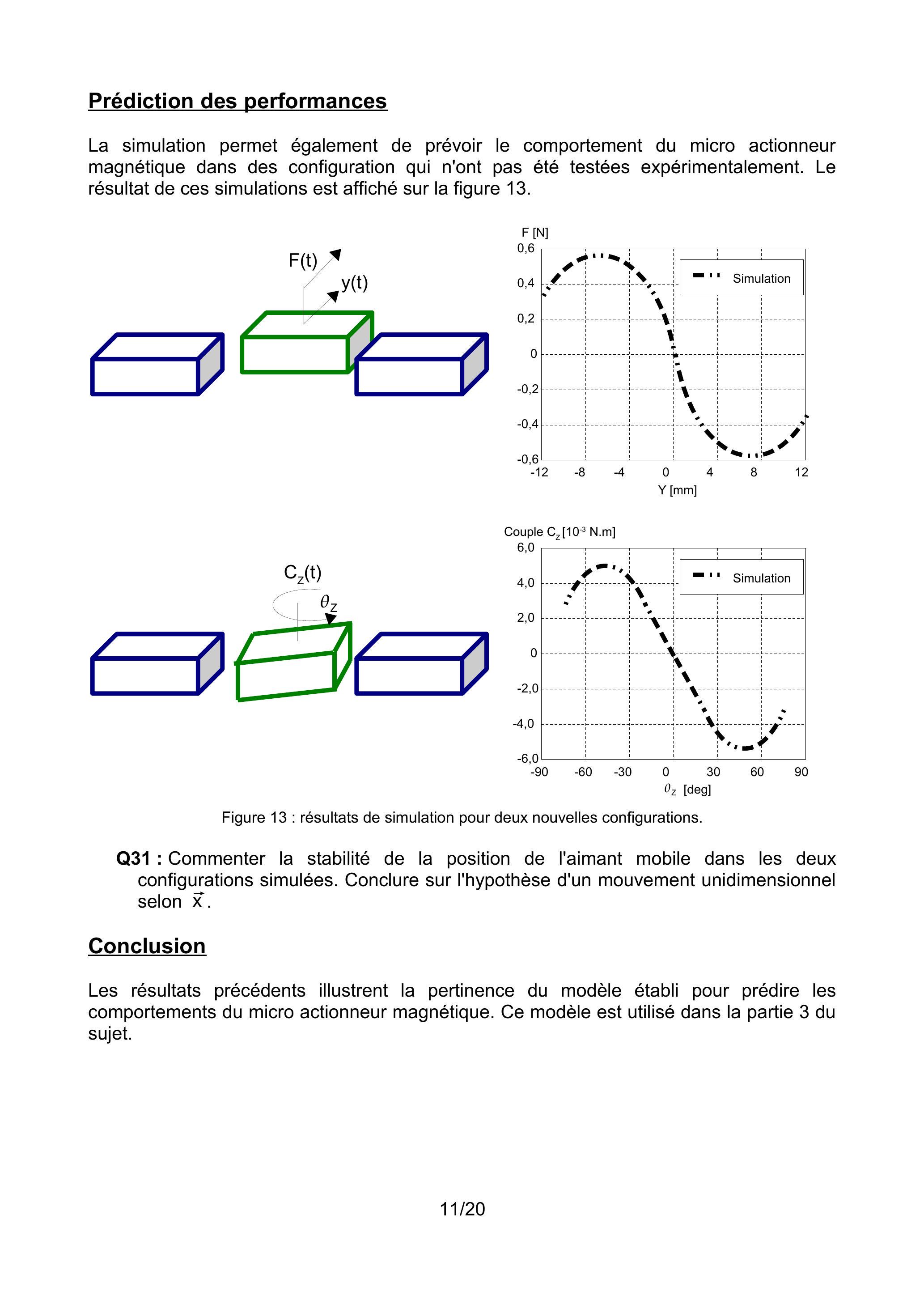 Q31: Commenter la stabilité de la position de l'aimant mobile dans les deux configurations simulées. Conclure sur l'hypothèse d'un mouvement unidimensionnel selon .