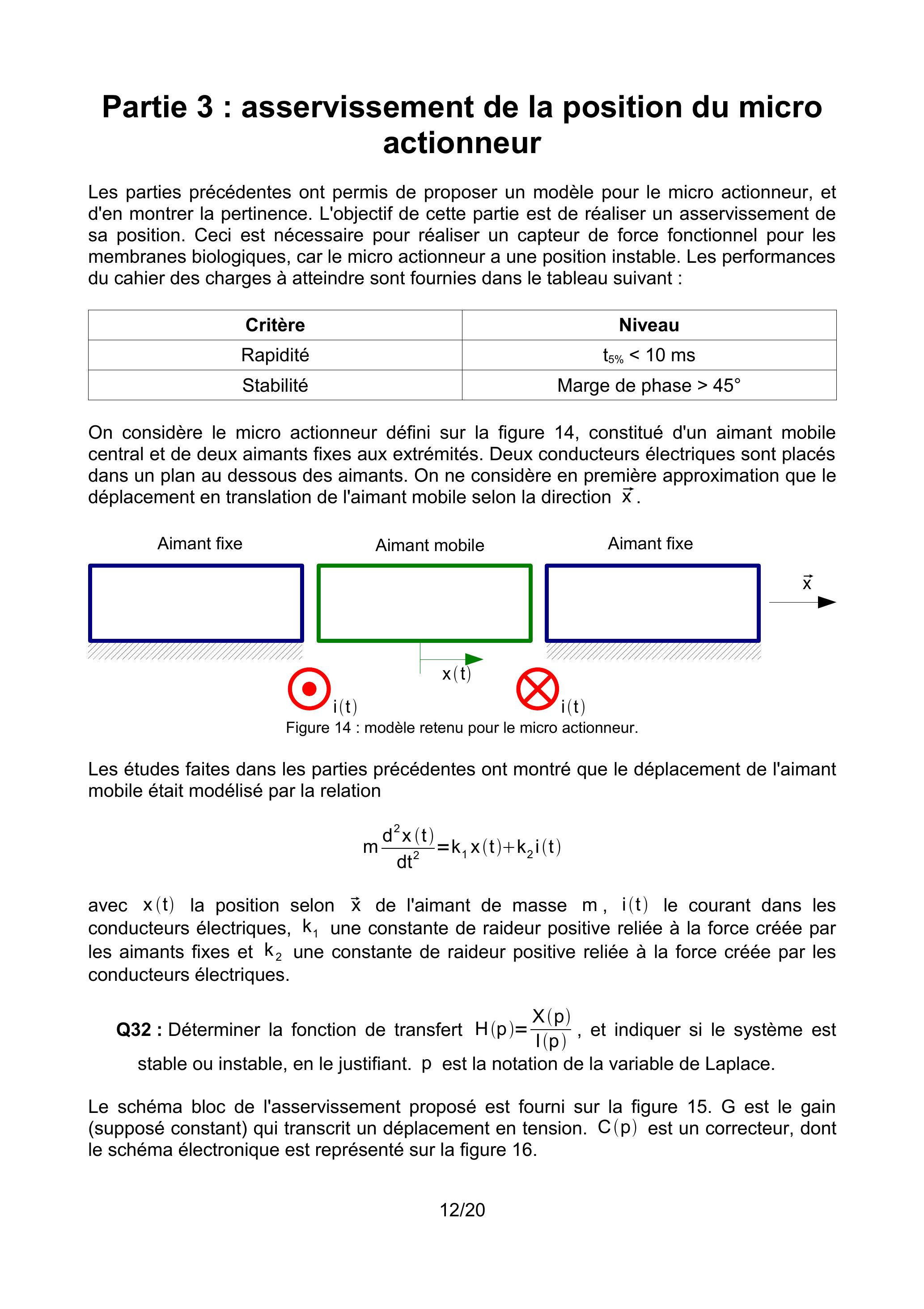 Le sujet est rédigé de la manière suivante : dans la première partie, on étudie la maquette expérimentale du micro actionneur magnétique et on en exploite les mesures. Dans la deuxième partie, un modèle de connaissance des lois du mouvement de l'aimant mobile est mis en place à partir de simulations et de leurs interprétations. Dans la troisième partie, un asservissement de la position du micro actionneur est réalisé, afin d'obtenir les performances souhaitées pour l'étude des cellules biologiques. Enfin, dans la quatrième partie, le comportement thermique de la solution est étudié.