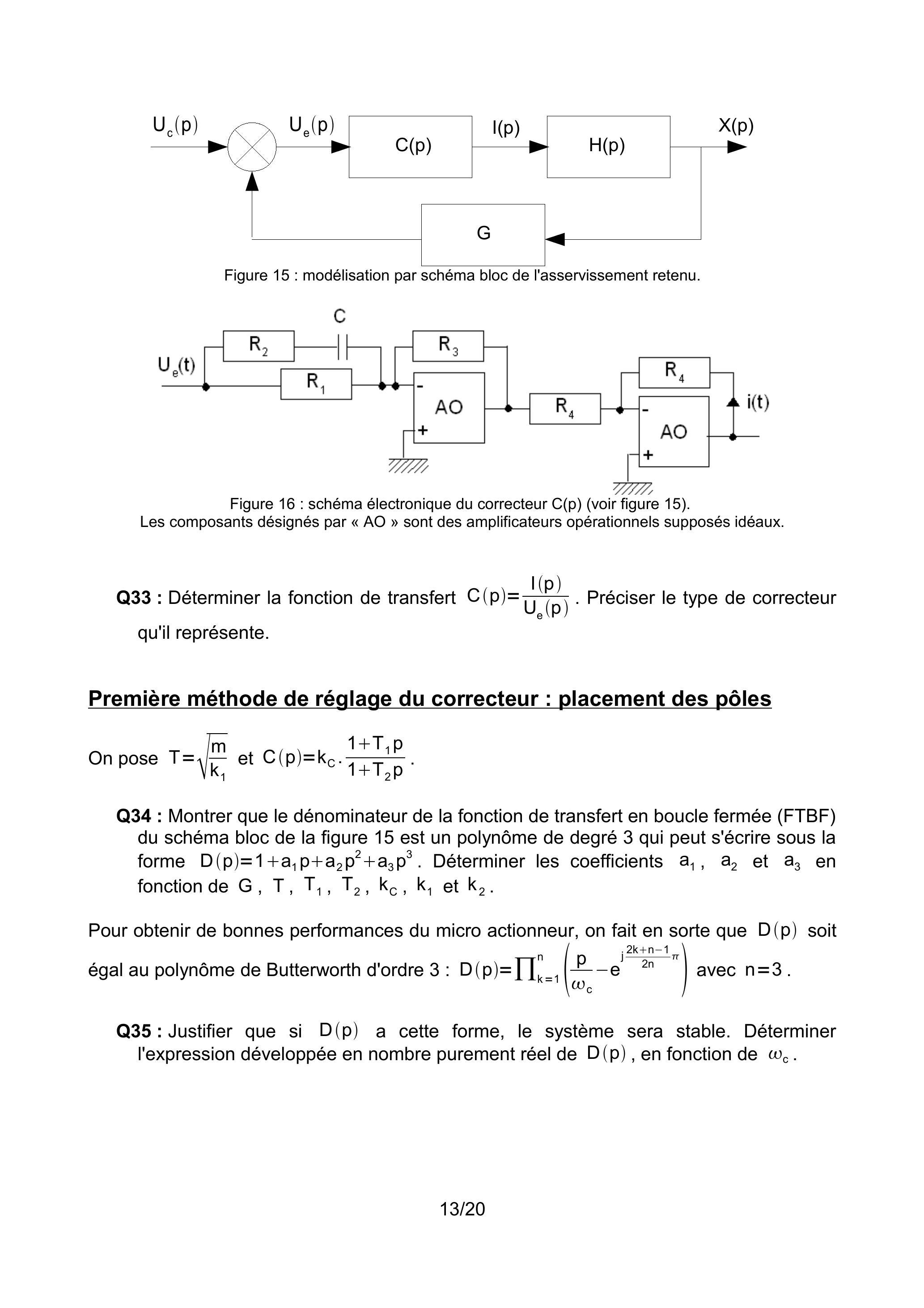 Le schéma bloc de l'asservissement proposé est fourni sur la figure 15. G est le gain (supposé constant) qui transcrit un déplacement en tension. est un correcteur, dont le schéma électronique est représenté sur la figure 16.